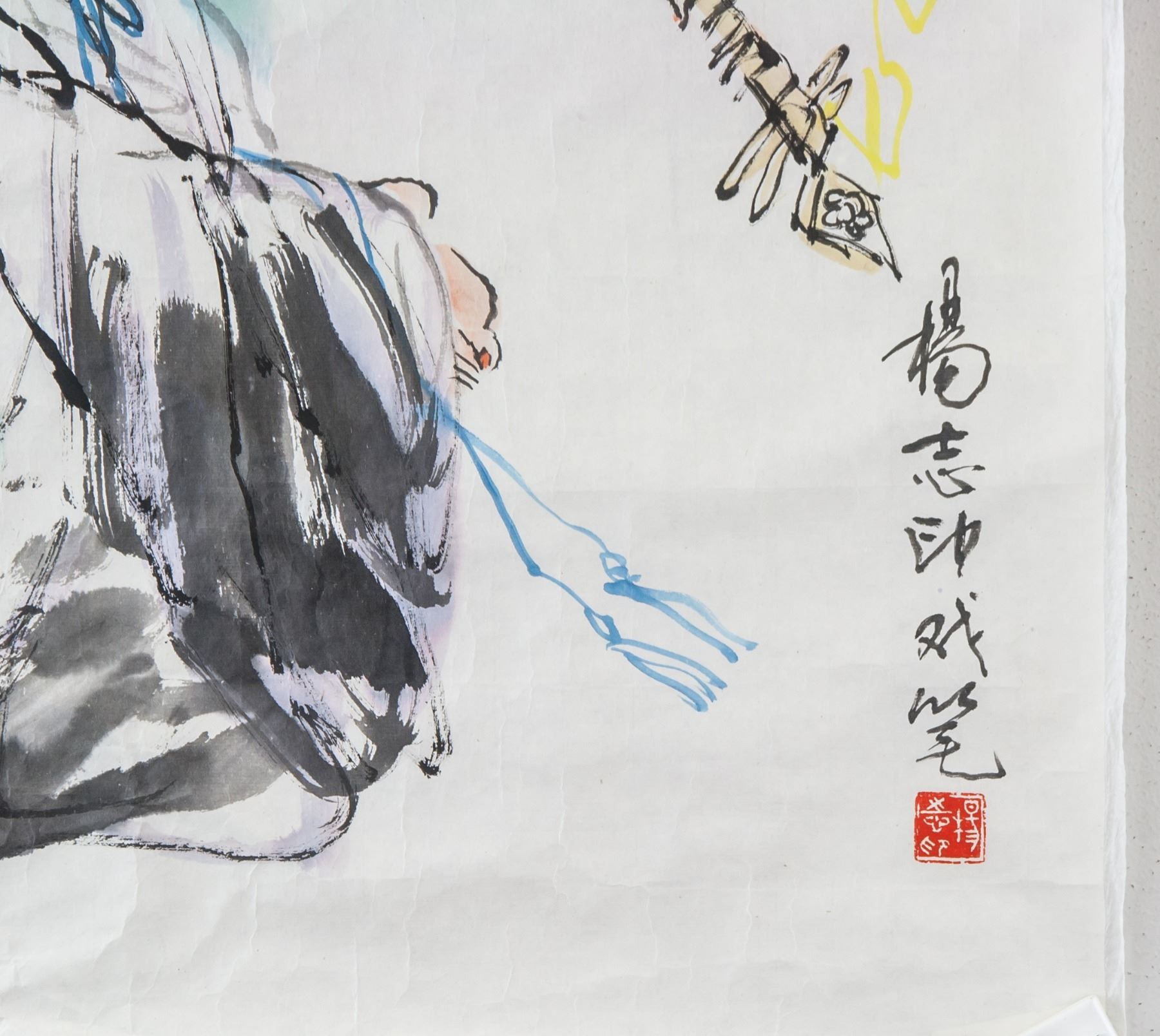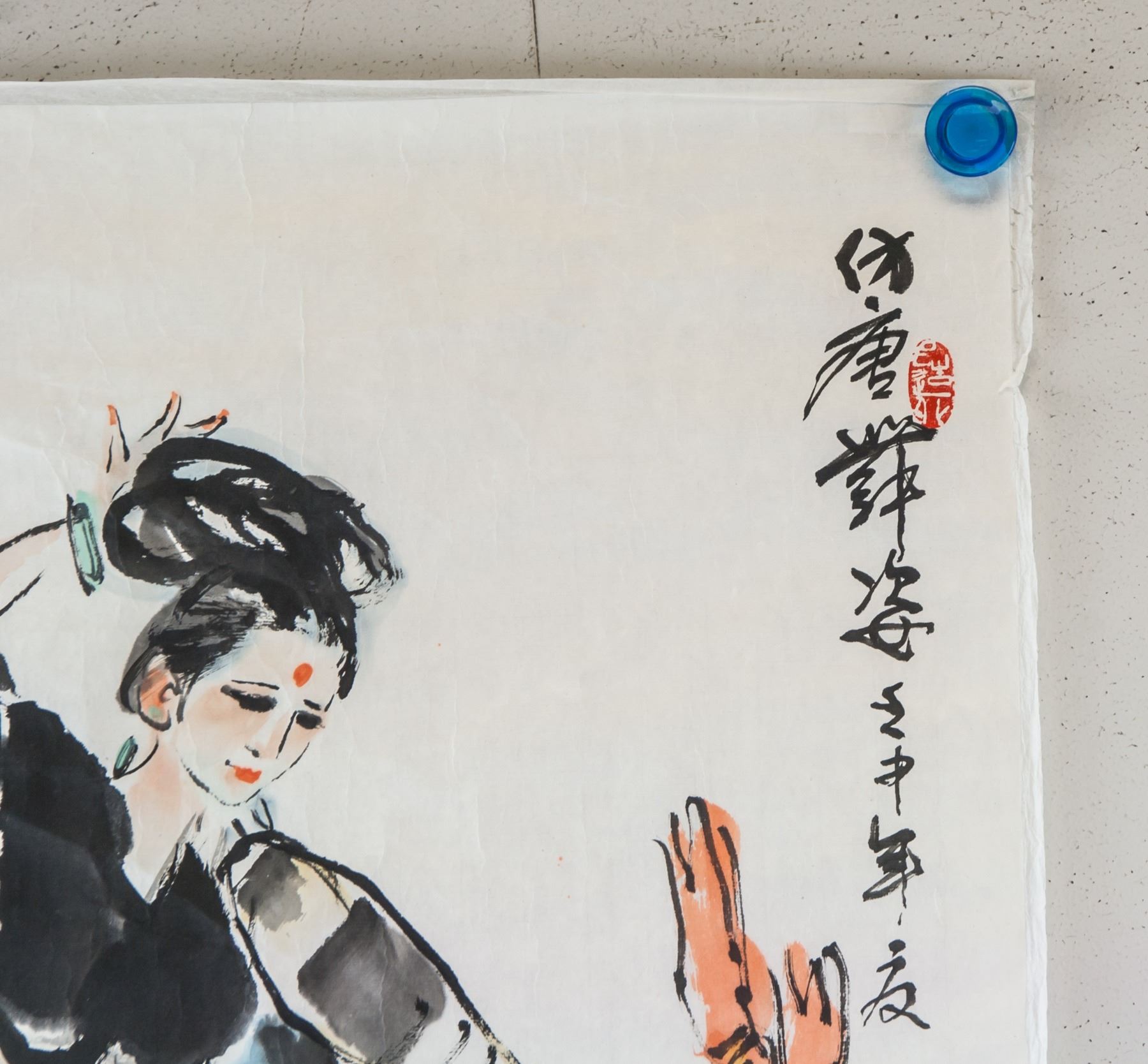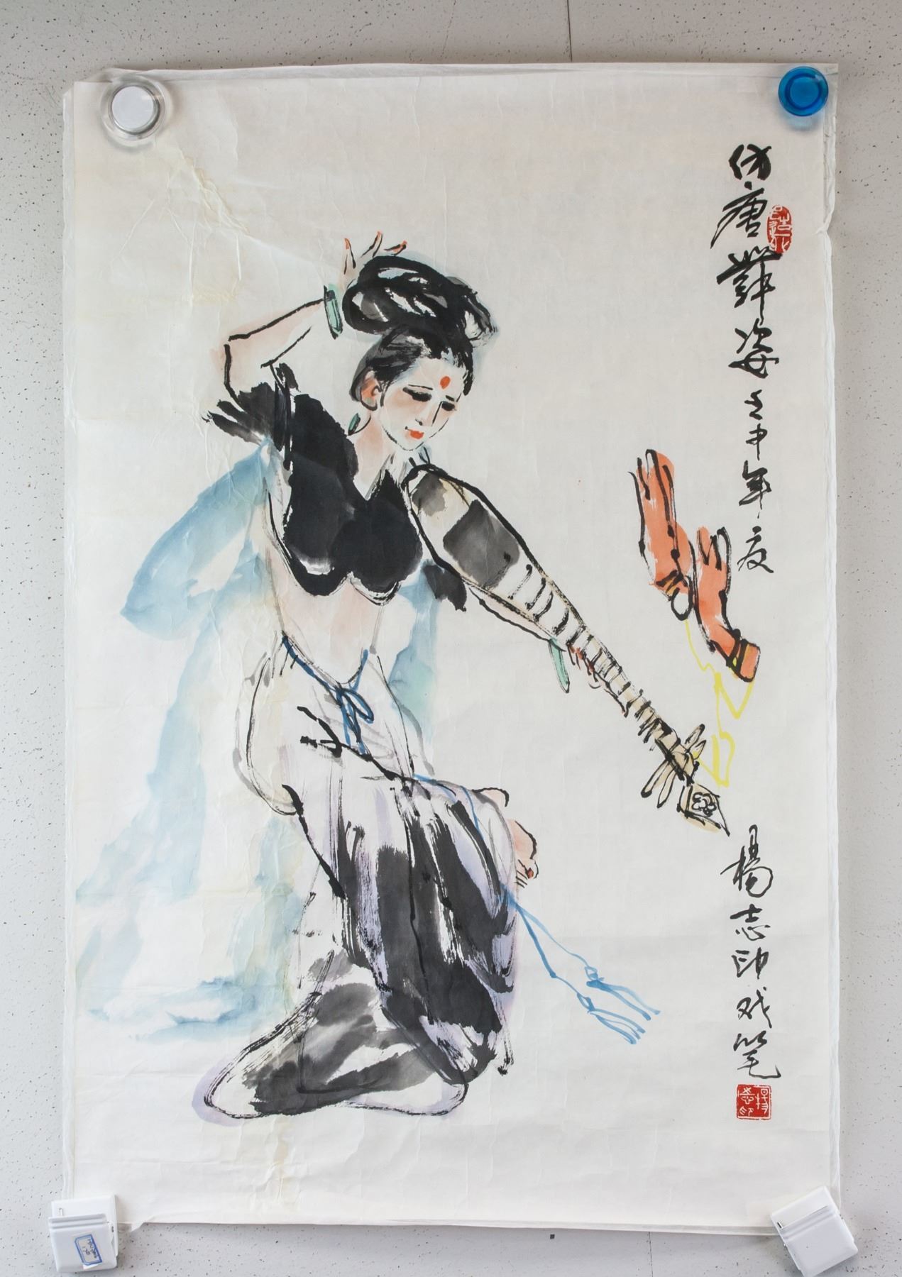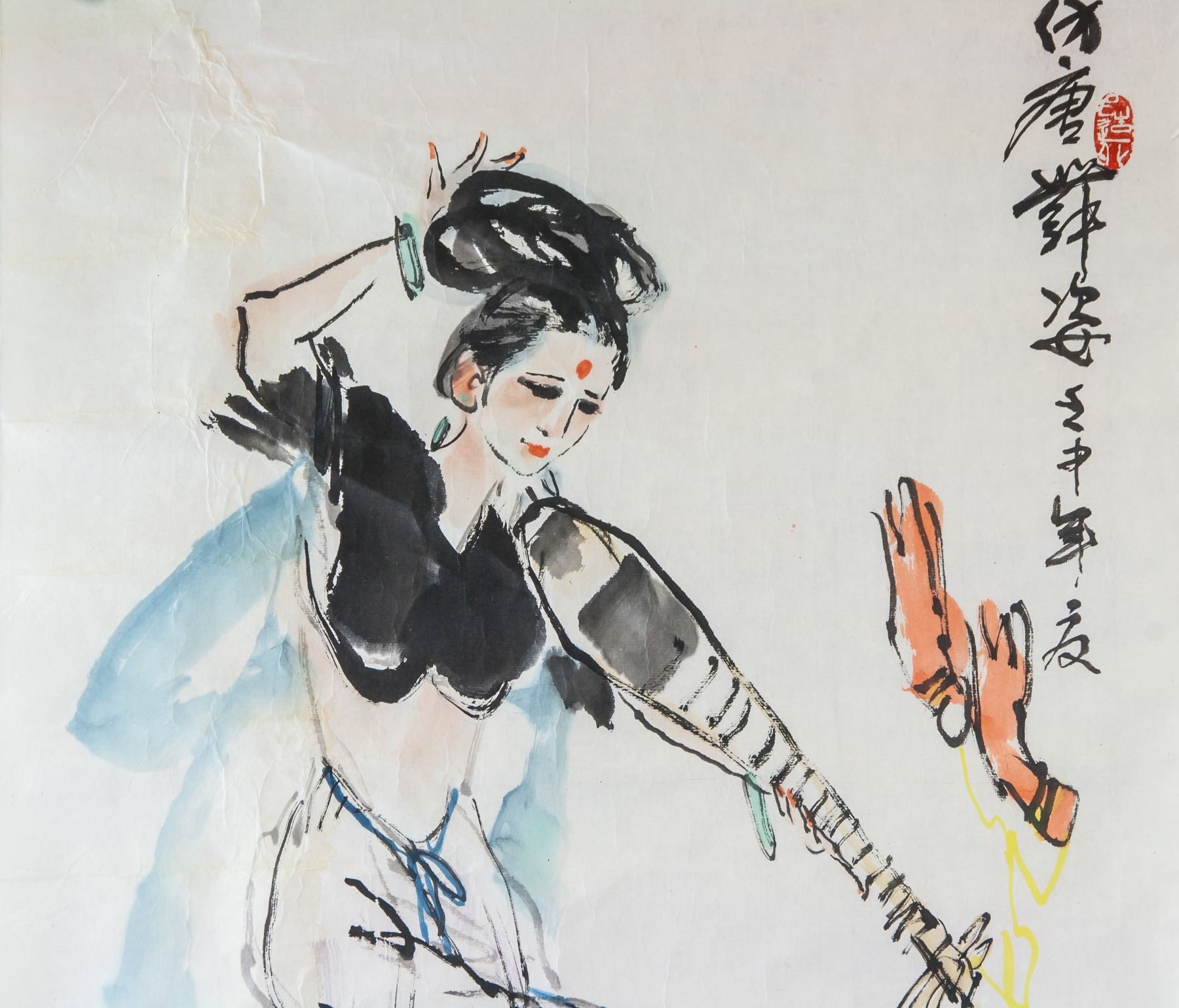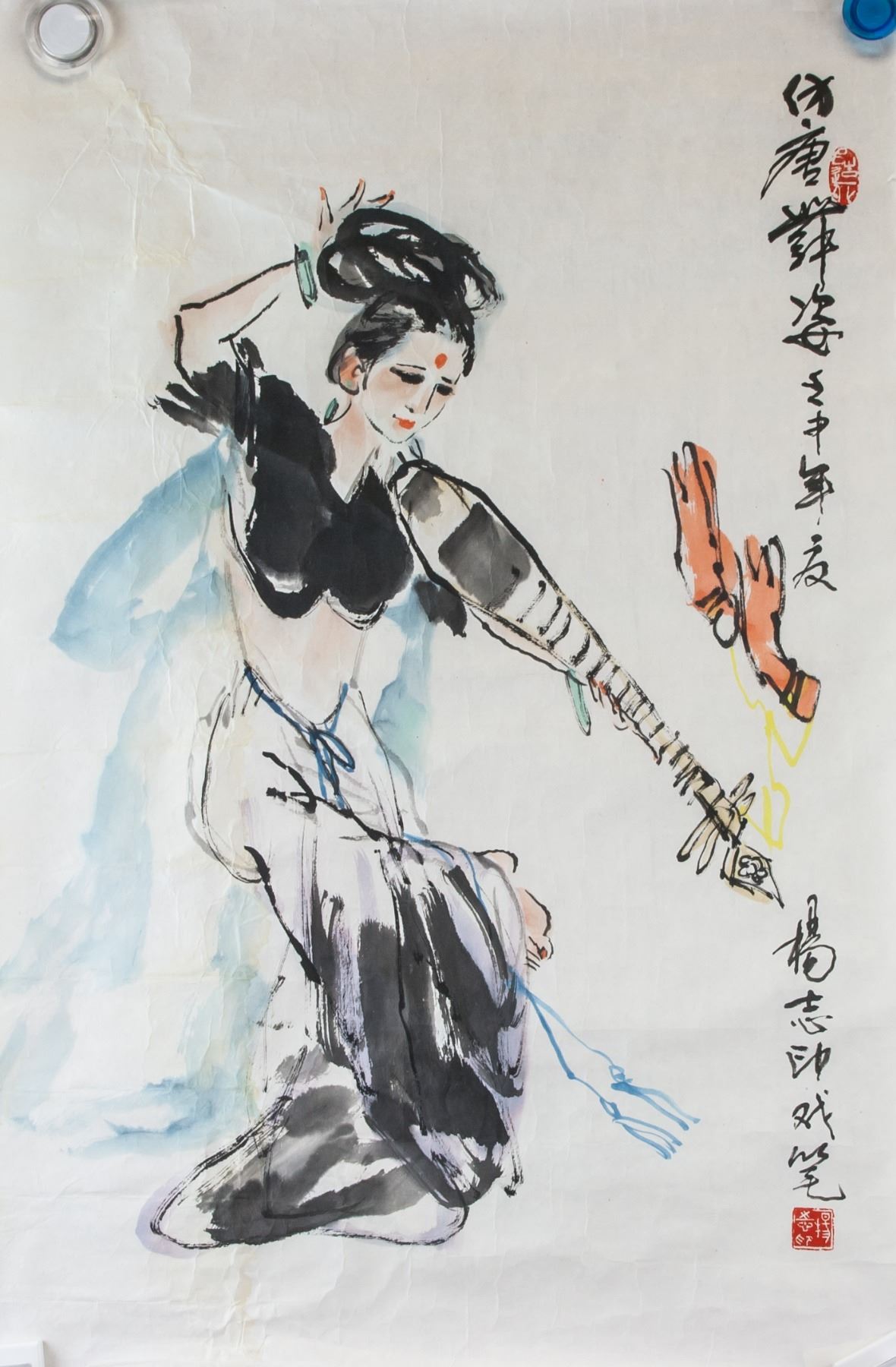 Painting of dancing beauty with Pipa; Chinese ink and watercolour on paper; signed Yang Zhiyin (b.1934), Chinese painter; inscribed with 2 artist seals; 69 cm x 45 cm; PROVENANCE: Forest Hill, Toronto estate