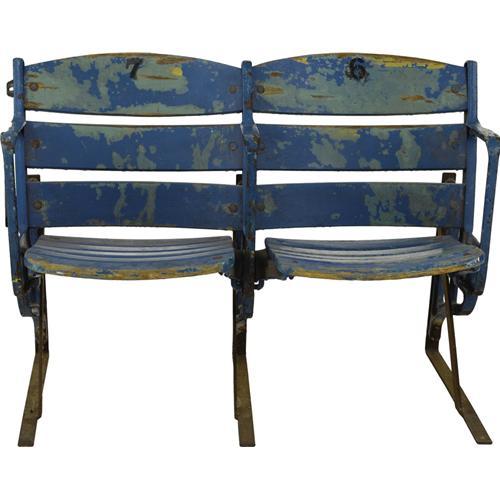 <B>Yankee Stadium Double Seats.</B></I> Removed from the venerable Bronx ballpark during the mid-1970's renovations, this pair of curved back seats remains in gloriously unrestored condition, with the sea foam green and later blue coats of paint unmistakable to the eye. These are the rear mount style, with well engineered stanchions applied to make the seats a functioning part of your trophy room. Seats are numbered "6" and "7," so all you Mantle fans out there should be pleased to have both digits worn by the Yankee legend. <BR><BR><B>Important notice:</B> Heritage usually auctions material at the rate of 200-250 lots per hour. On some occasions eBay Live bid software or the Internet may not be able to keep up with the pace of the auction. We recommend placing a realistic absentee bid now as insurance to avoid disappointment. Occasionally the auctioneer may eliminate or reject an eBay Live bid, and the auctioneer may also reopen a lot after the close of the eBay live bidding (usually because we missed an audience bid), and may reject your bid even if it shows you as the winning bidder. By bidding via eBay Live, you agree that Heritage may award the lot to another bidder at its sole discretion under the circumstances described above or any other reasonable circumstances. Since eBay bids are not shown to us until we open the lot on the floor, we treat those bids just like floor bids. In most cases the floor responds before the eBay bid is presented to us, due to Internet lag time, so for consistency we have made it a policy that floor bids are always considered first over tie eBay live bids. Also please note that all Heritage lots purchased through eBay Live carry a 22.5% Buyer's Premium. Please make sure you read the Terms and Conditions before you bid. This lot is being auctioned in conjunction with a live floor auction by Heritage Galleries & Auctioneers. All final auction and invoice information will be supplied by Heritage Galleries & Auctioneers, and all other information should be considered preliminary. Lot:19532 <BR><BR><B>Winning Notification and Billing:</B> After the FINAL session in this auction is complete, Heritage will send e-mail and snail mail invoices. This process normally takes several days. All final auction and invoice information will be supplied by Heritage Galleries & Auctioneers, and all other information should be considered preliminary. <BR><BR>This auction will be conducted on a live auction floor and over the Internet through eBay Live. If you choose to place an absentee bid, please take a moment to <font color='#0000ff'><u><a href='http://pages.ebay.com/liveauctions/help/before/laabsentee.html'>learn how eBay Live absentee bidding works</a></u></font><font color='#000000'>