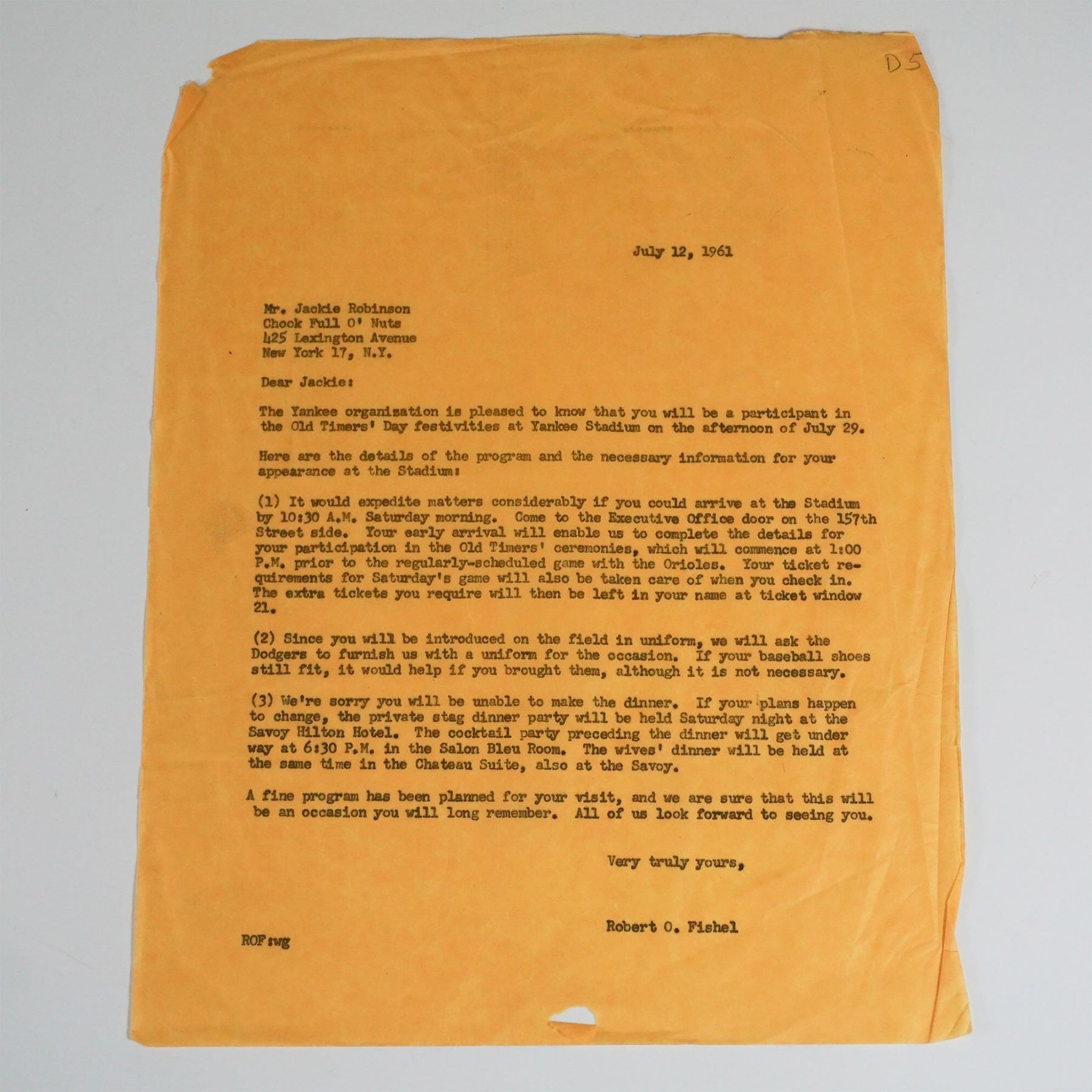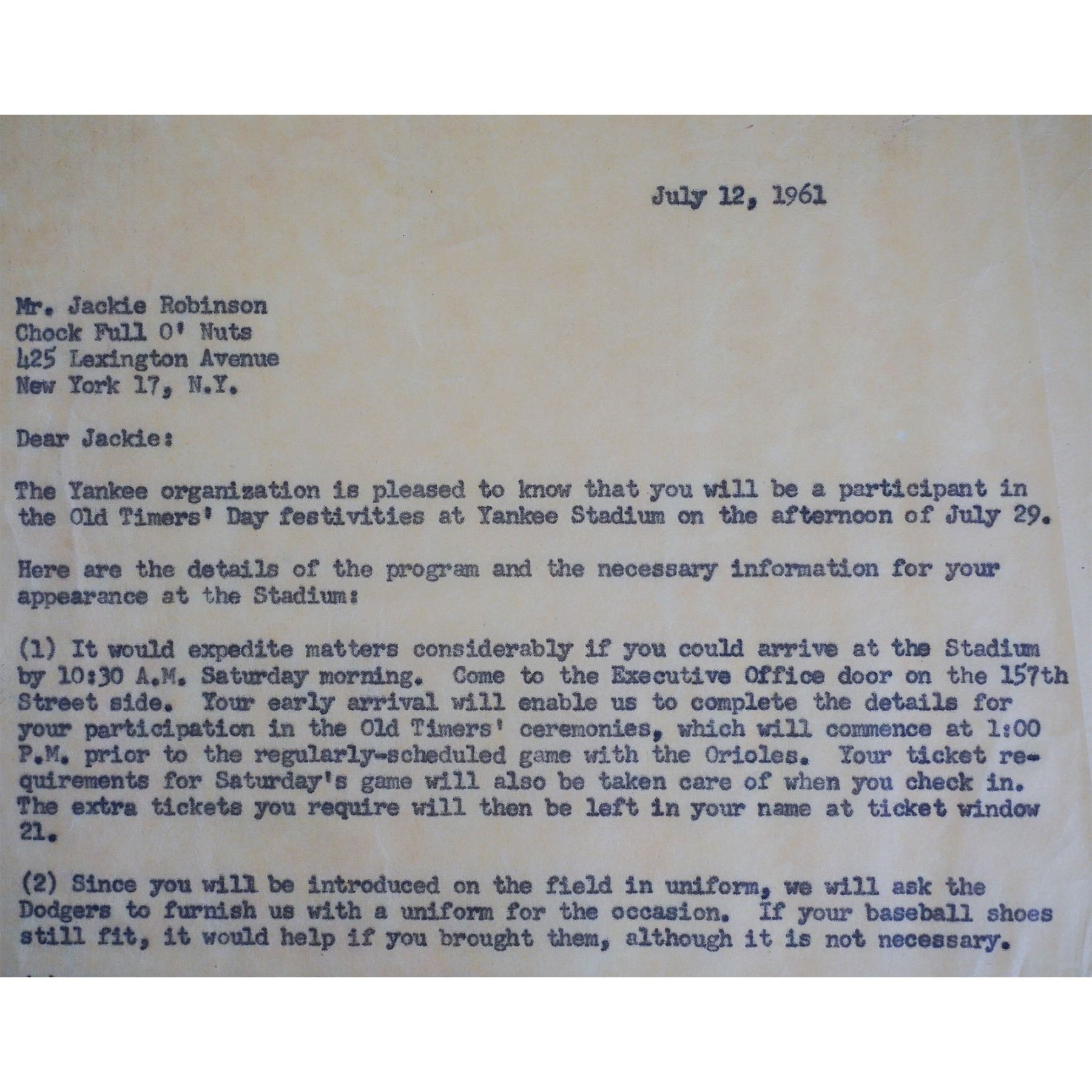 Yankees Letter, Jackie Robinson Old Timers' Day Invitation