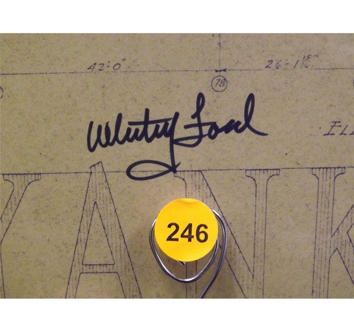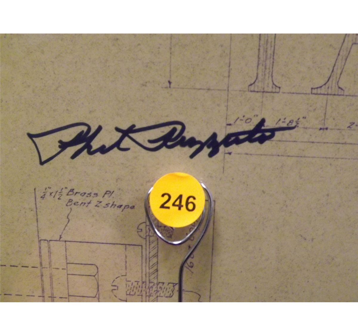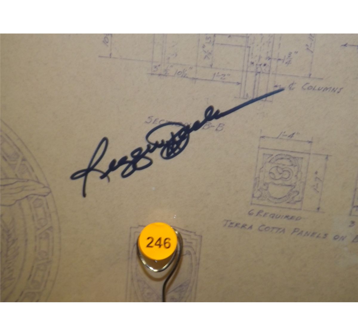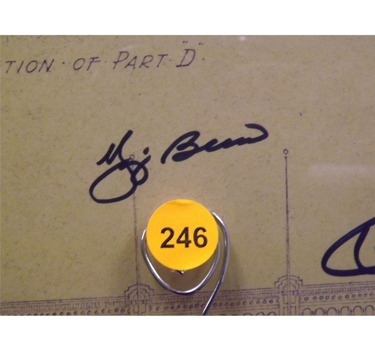 Yankees Stadium Blueprint Autographs. Framed replica Yankee Stadium Blueprints. Autographed by Reggie Jackson, Phil Rizzuto, Joe Dimaggio, Whitey Ford, Yogi Berra, Mickey Mantle, Don Mattingly and Billy Martin. Appraised or estimated retail value $2800. COA by Christopher Morales. All Sales Final. Please see terms and conditions of auction.