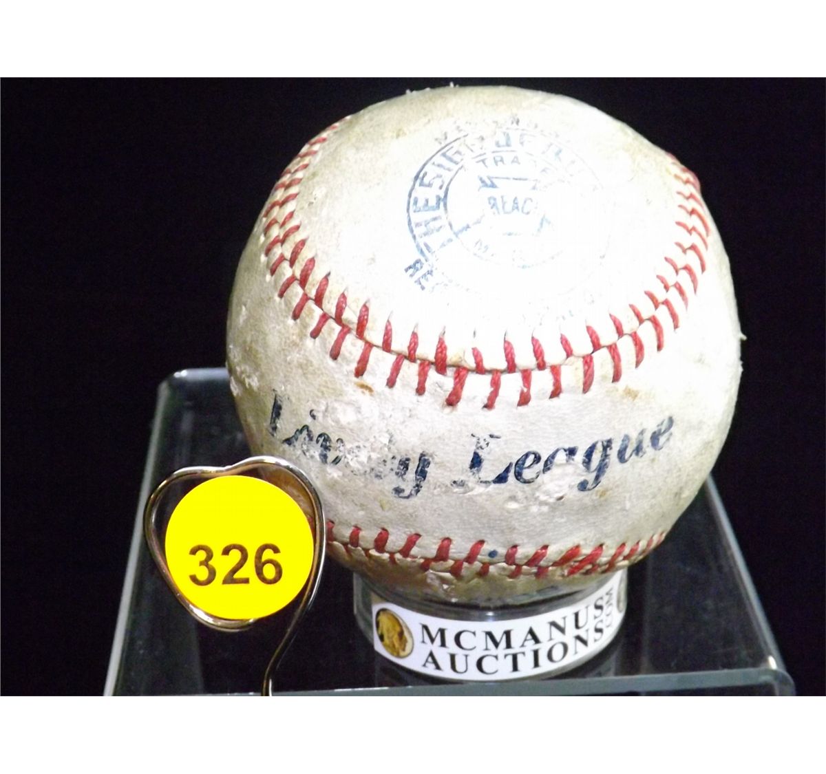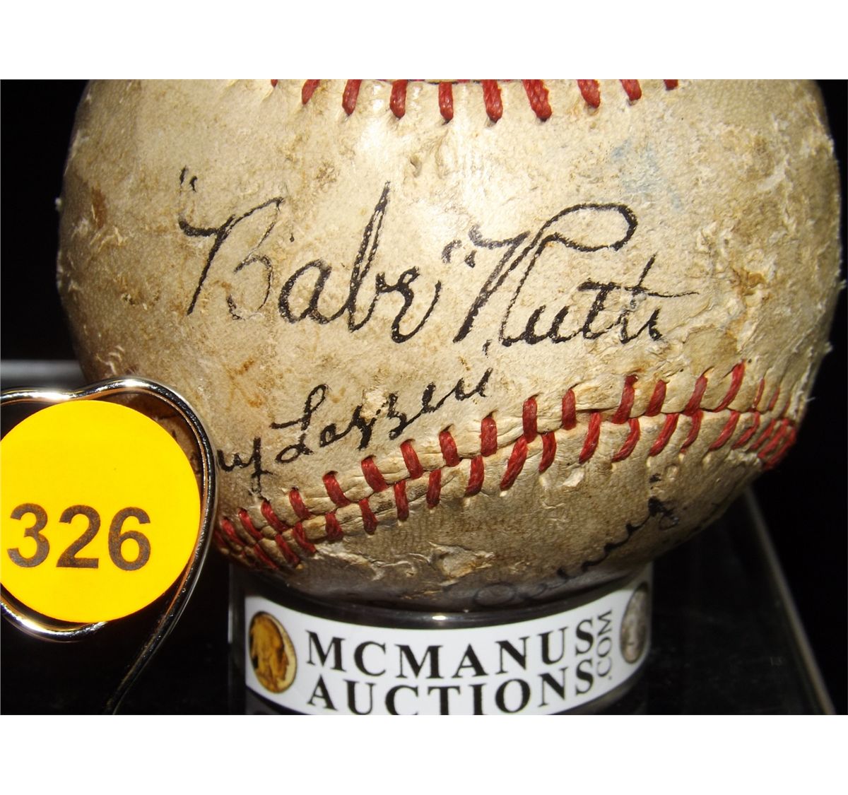 Yankees Stars Autographed Baseball. Unknown Ball autographed by Babe Ruth, Lou Gehrig, Miller Huggins and Tony Lazzeri. Appraised or estimated retail value $40000. COA by Christopher Morales. All Sales Final. Please see terms and conditions of auction.