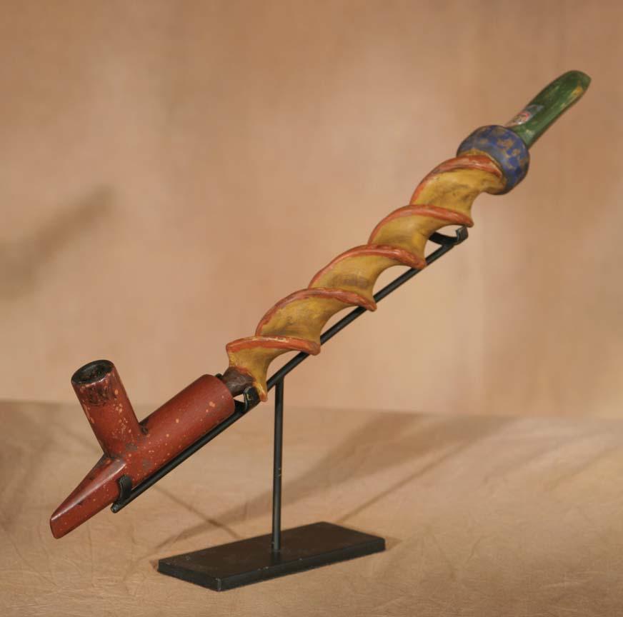 Yankton Sioux Pipe. 5" x 2 ¾" Catlinite bowl. 13 ½" twisted stem. Circa 1880s. (est $1,000-1,500). For condition reports please visit: www.auctioninsantafe.com/cr2011.pdf