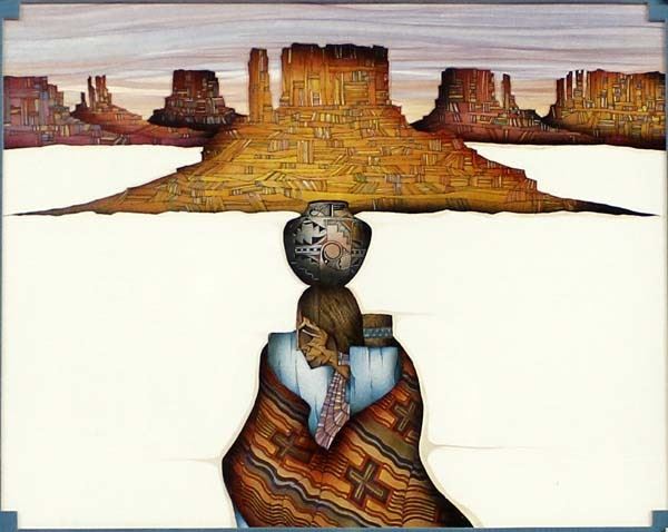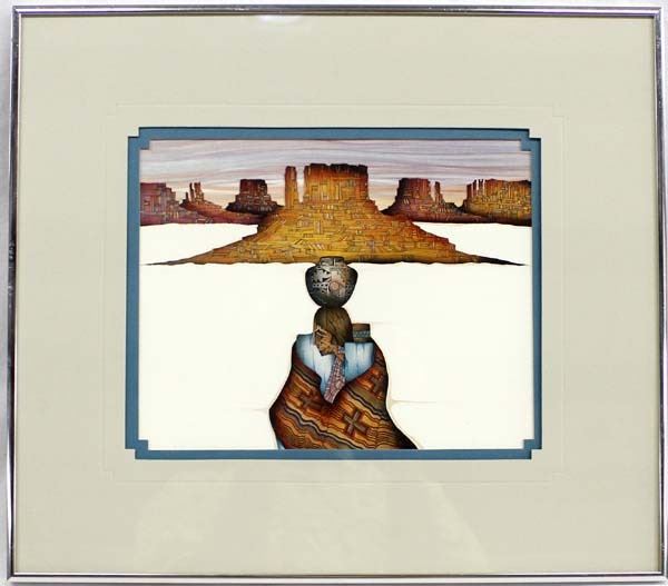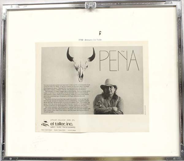 Yaqui Print ''Artesana Del Valle'' by Amado Maurillo Pena, Jr., visual measures 8'' x 10'', framed measures 16'' x 14'', professionally framed and matted