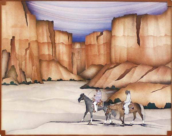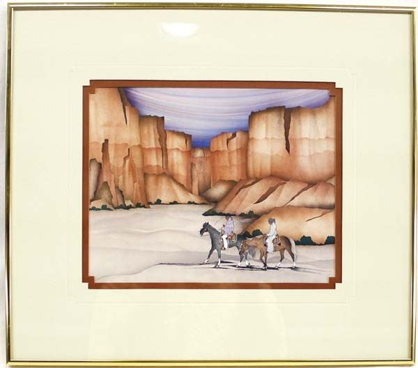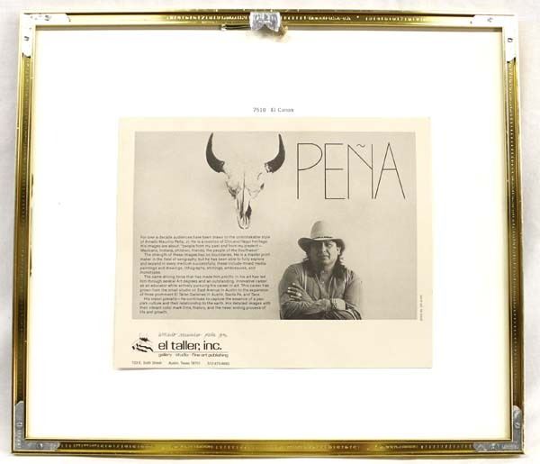 Yaqui Print ''El Canon'' by Amado Maurillo Pena, Jr., visual measures 8'' x 10'', framed measures 16'' x 14'', professionally framed and matted