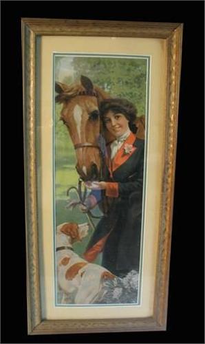 Yard Long Print, Original by Clay Robinson Co., Girl, Horse and Dog. Framed under Glass.