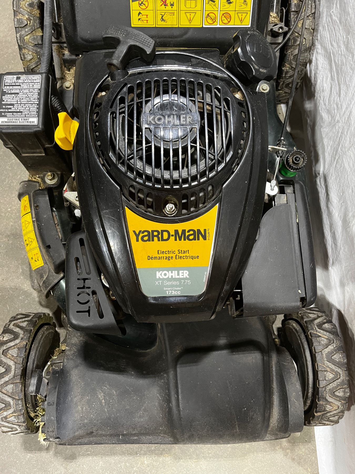 Yard-Man Kohler Electric start Lawnmower 173cc XT series 7.75 Runs and self propell works as well.Needs battery for electric start