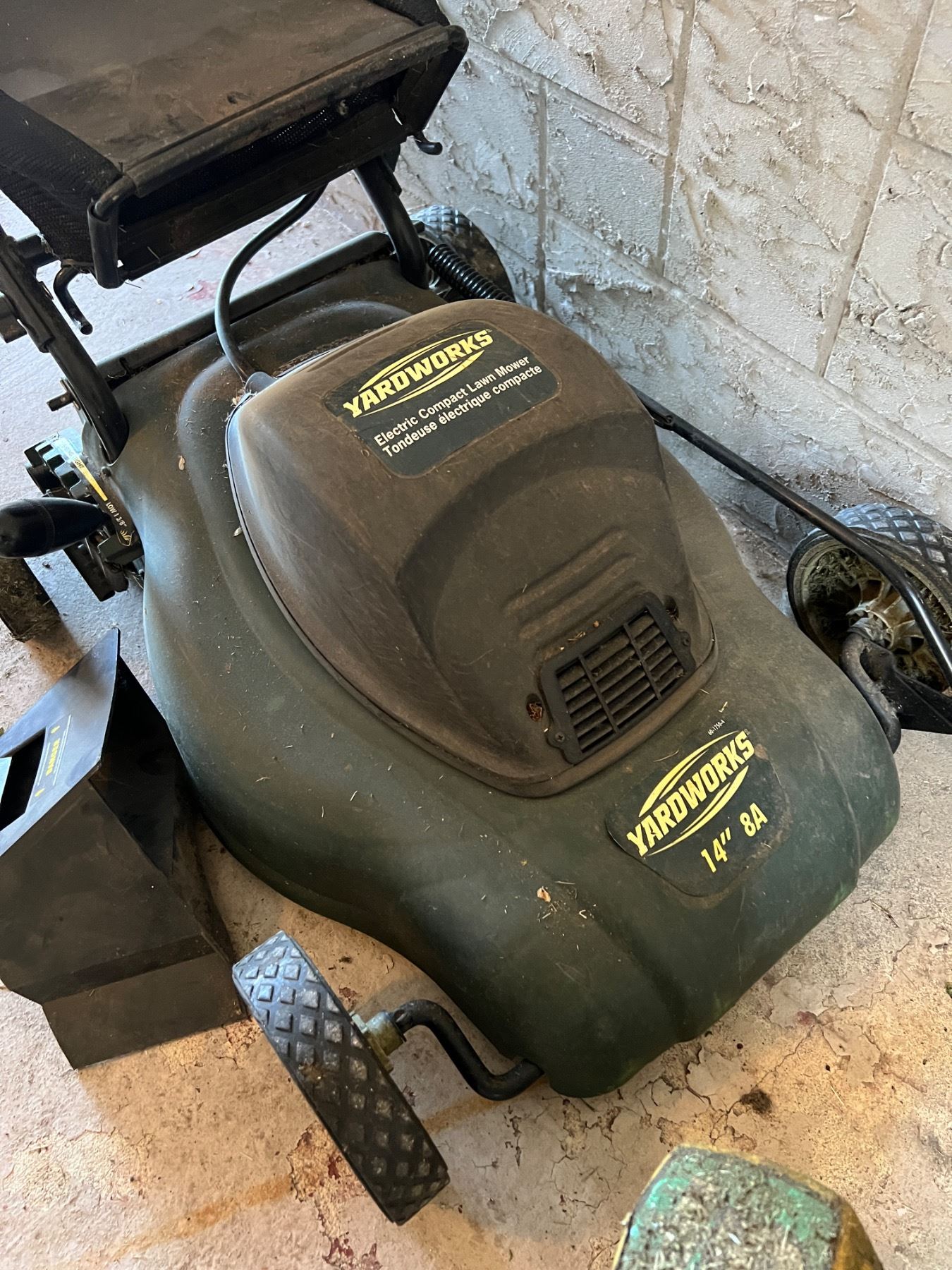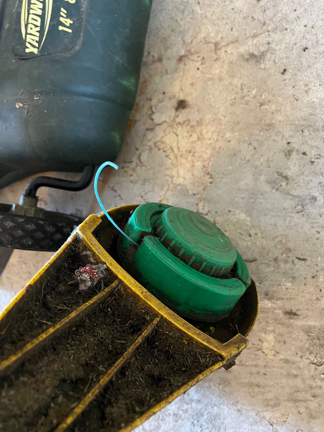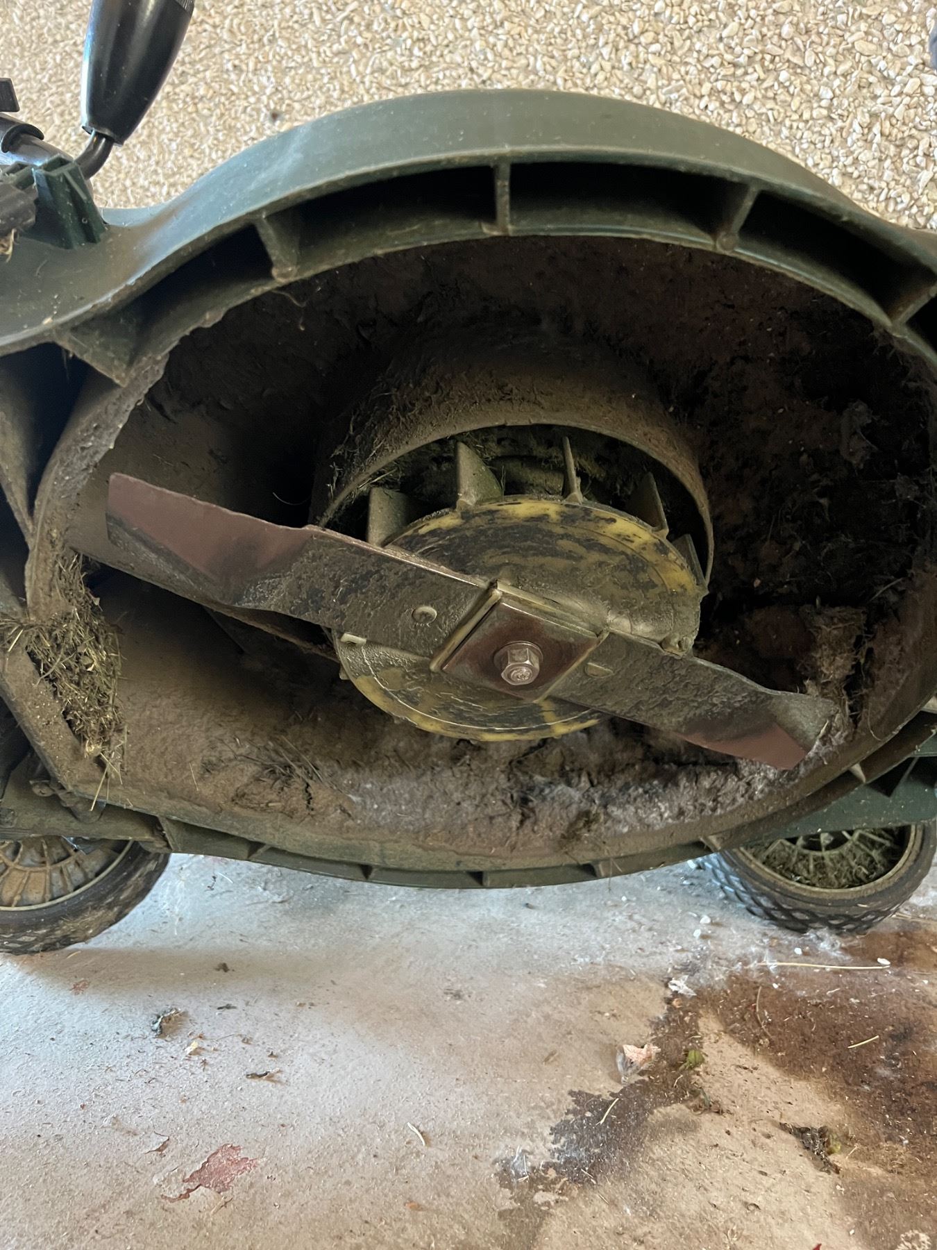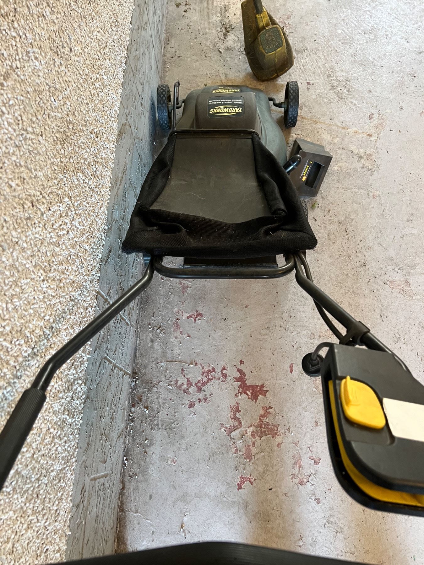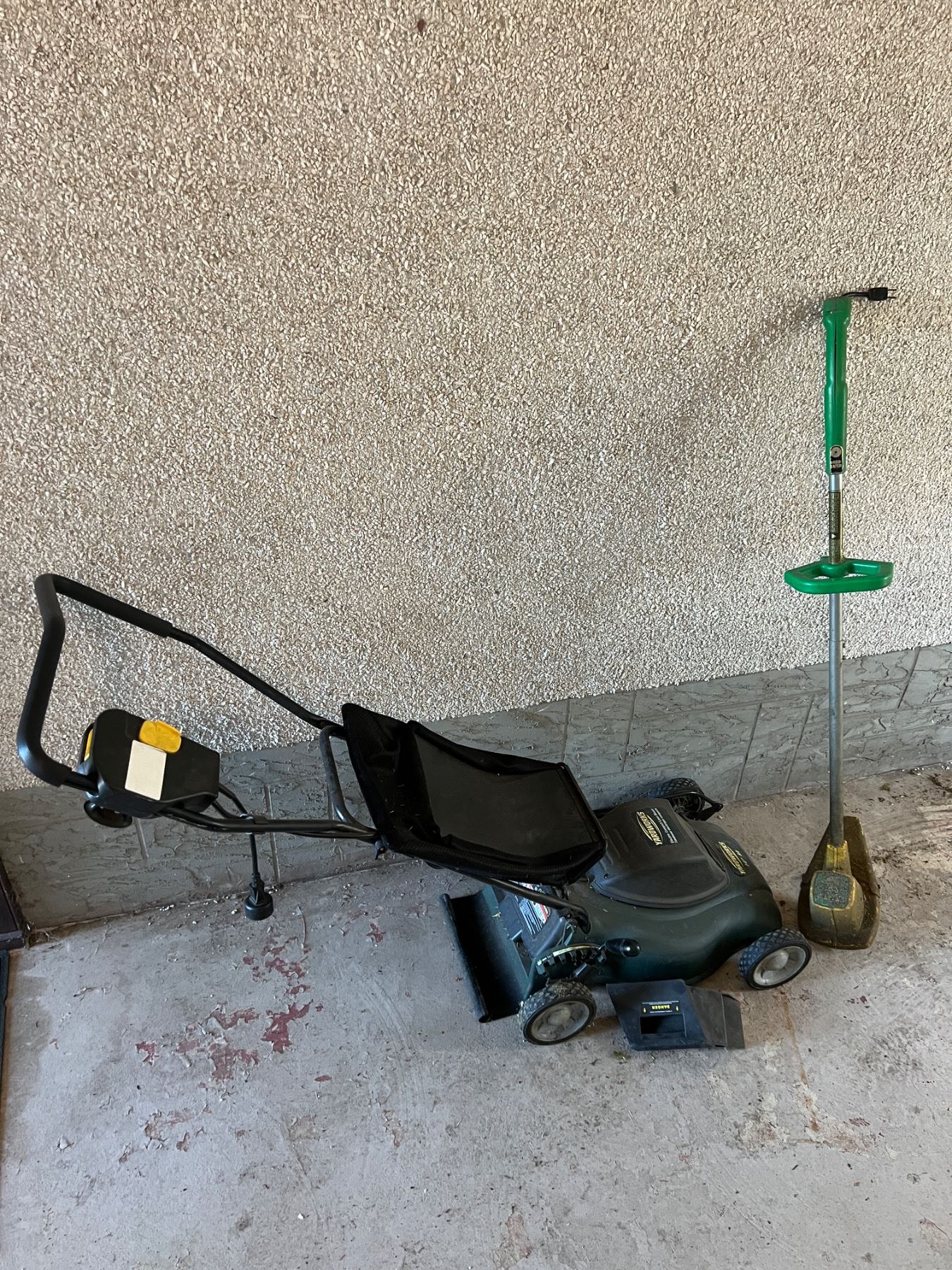 Both power on. Both have been used and have grass clumps/stains to show for it.