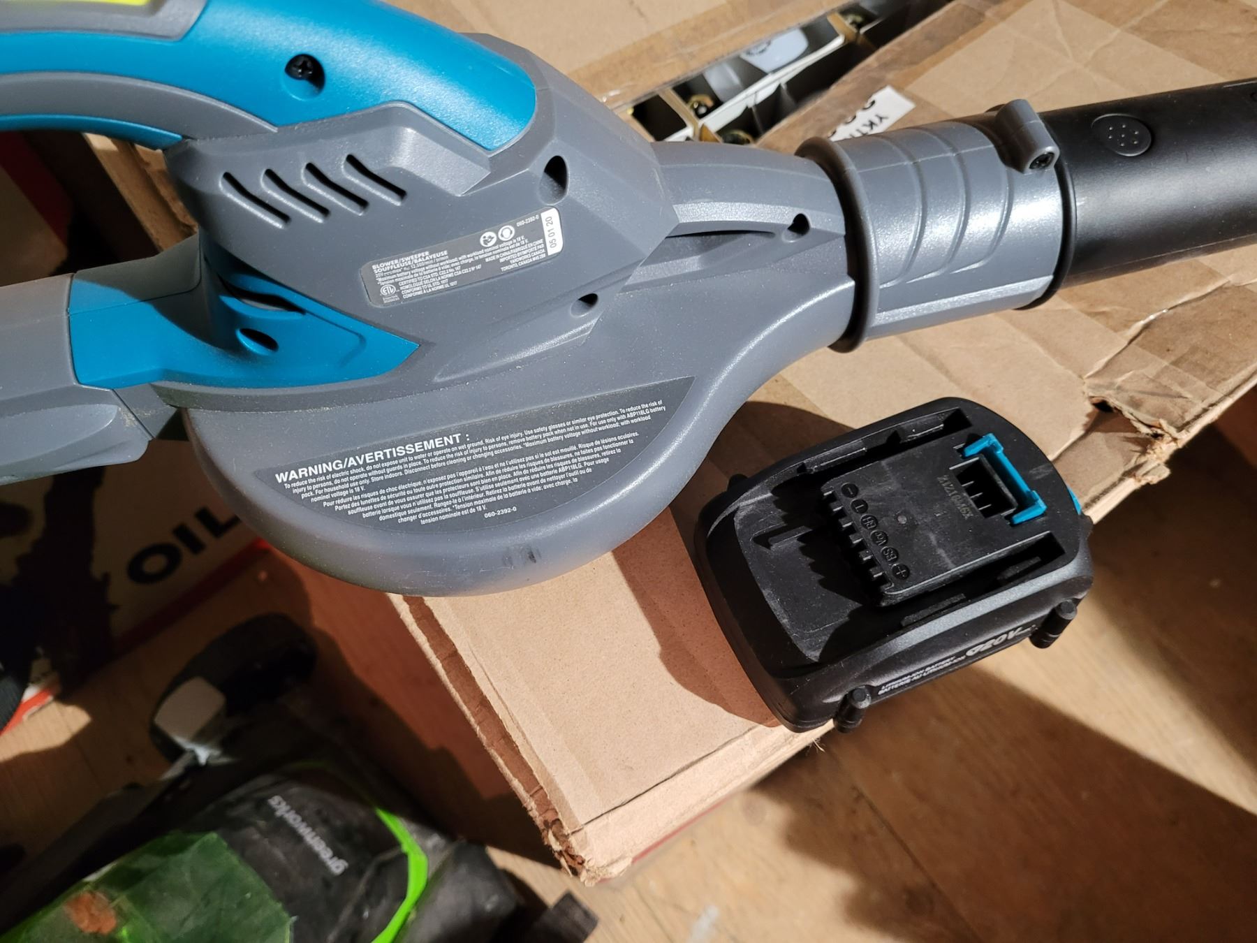 Yardworks blower and weed whipper includes 20 volt battery & recharger - tested, working with strong battery