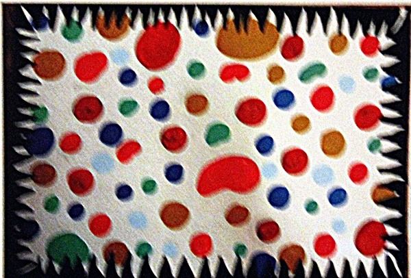 Oil on paper in the manner of Yayoi Kusama "Infinity", circa 1970, private collection, unframed dimensions approximately 12x17. in the manner of Yayoi Kusama, (born March 22, 1929, Matsumoto, Japan) Japanese artist who was a self-described “obsessional artist.” She employed painting, sculpture, performance art, and installations in a variety of styles, including Pop art and Minimalism.