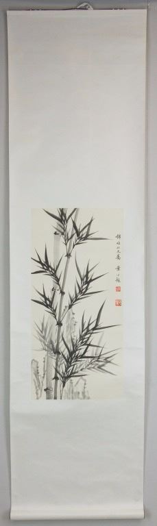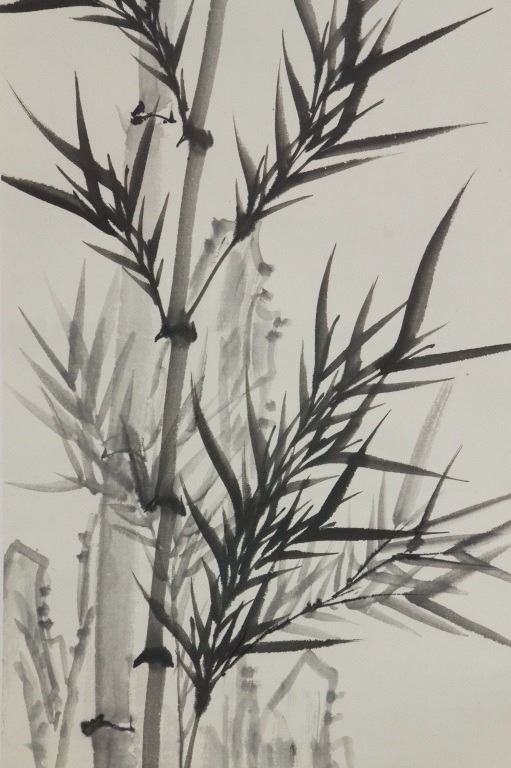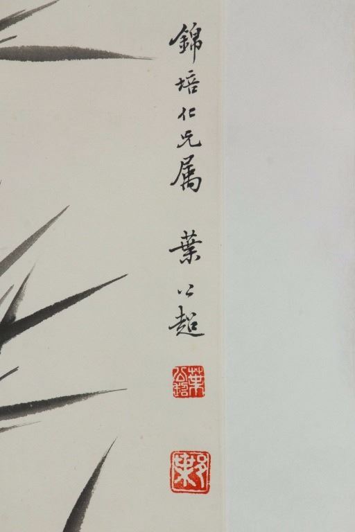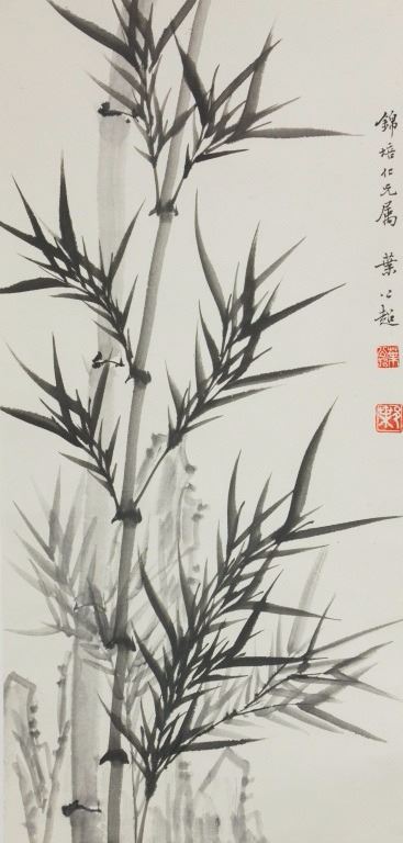 Drawing of bamboo; Chinese ink on paper; hanging scroll; signed Ye Gongchao (1904-1981); inscribed with 2 artist seals; 69 cm x 33.5 cm
