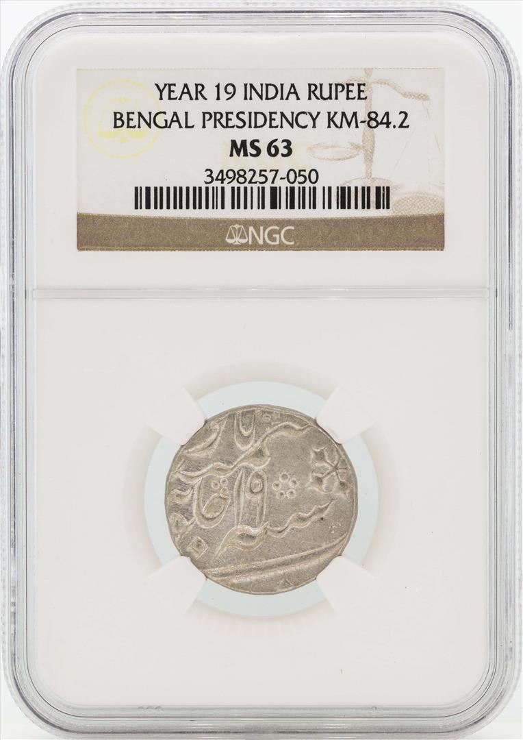 One Year 19 India Rupee Bengal Presidency Coin NGC MS63. NGC Certified.