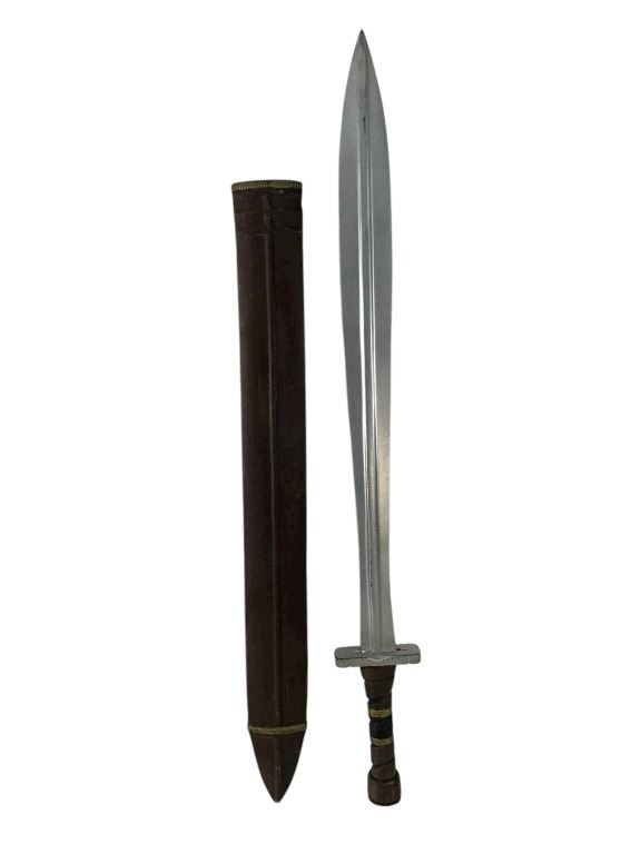 Original Roman soldier stunt sword used in the Harold Ramis directed adventure comedy film 'Year One' (2009), a parody on the book of Genesis, the plot follows two tribesmen who travel to the city of Sodom to save their love interests after being banished from their tribe. Problems quickly emerge during their journey, as they encounter several biblical figures along the way.