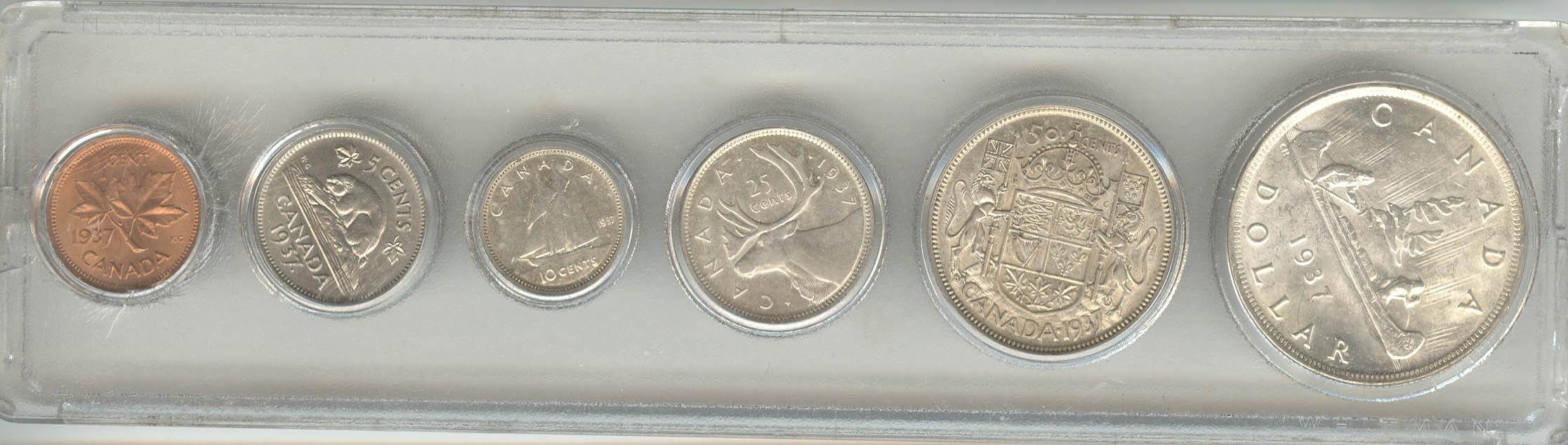 1937, grade VF to BU. Cent to dollar.