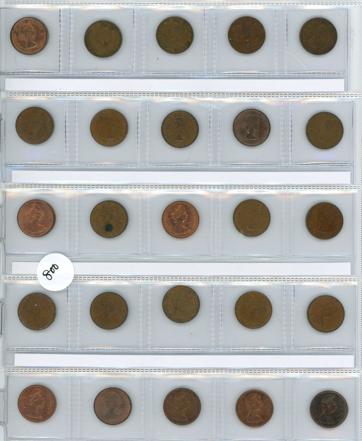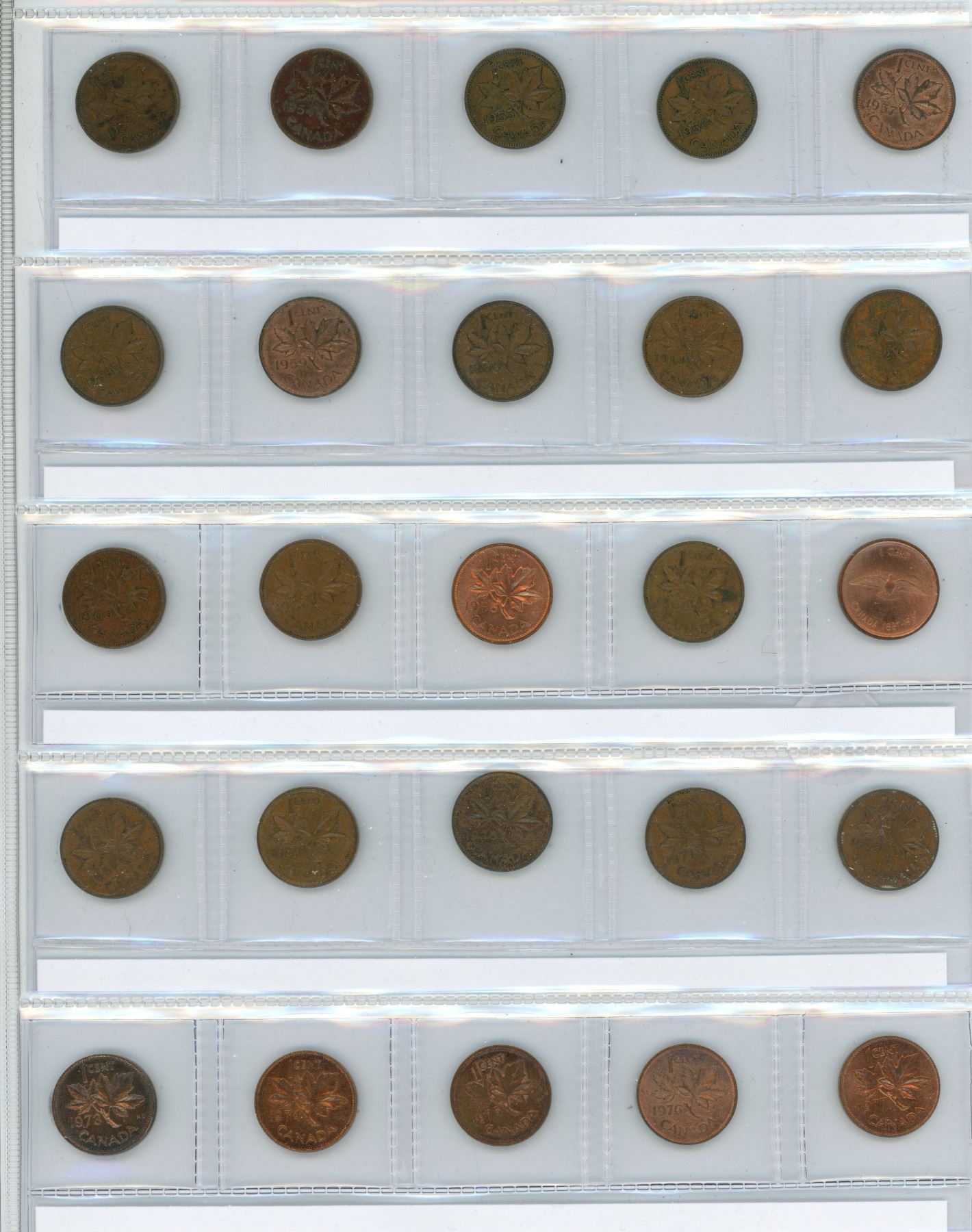 Year Set of 25 Canadian Queen Elizabeth Small Cents 1953 – 1977. One of each date. Coins grade up to BU Red.