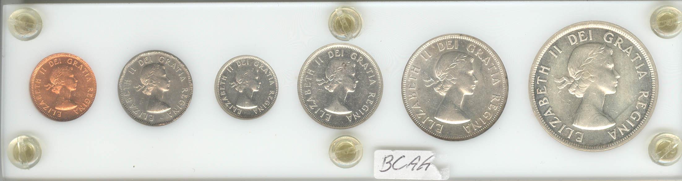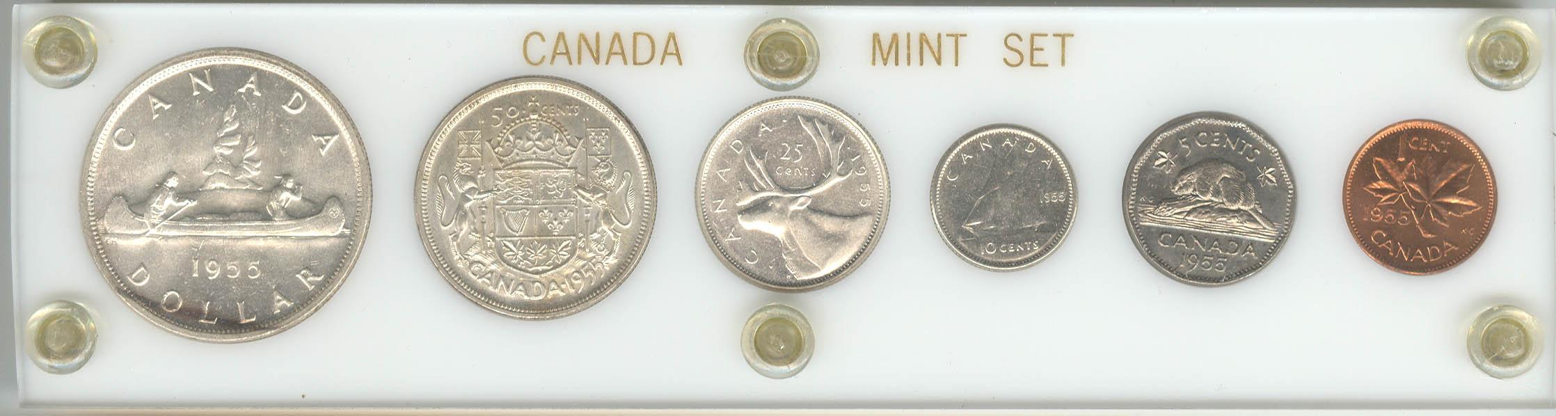1955, grade VF to BU. Cent to dollar.