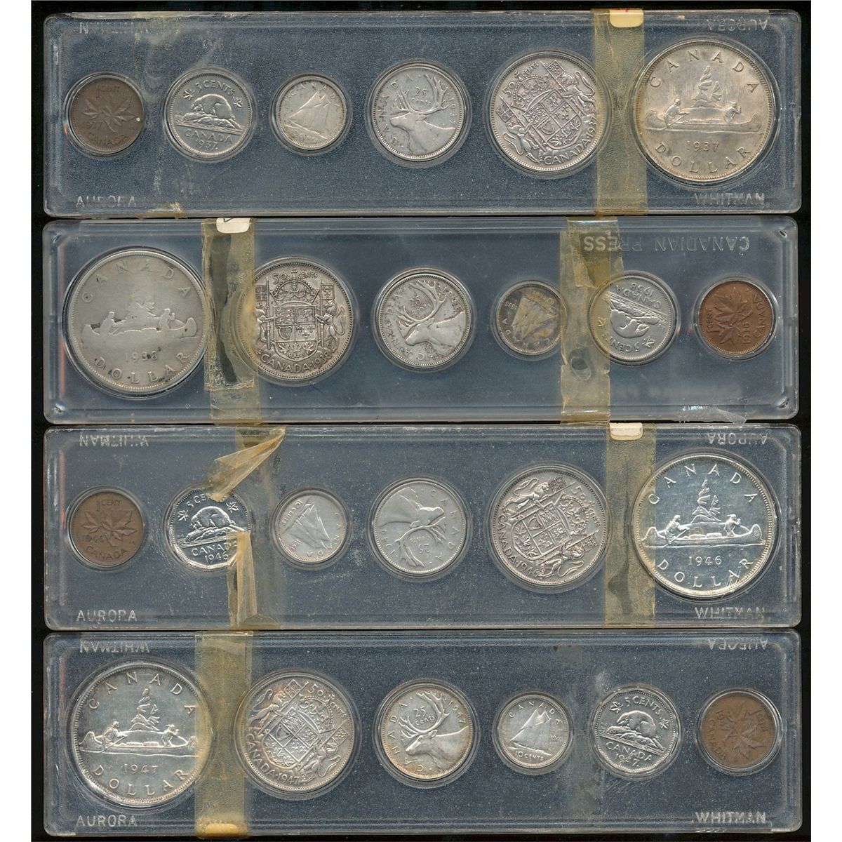 Year Sets; includes 1937, 1938, 1939, 1946, 1947 Blt, 1949 to 1970, 1972 all complete, Partial set 1935, 1945 without Dollars & 1971 without 25¢ & 50¢. All sets with circ coins. Dollars 1938 Good, 1946 EF & 1947 Blt EF.