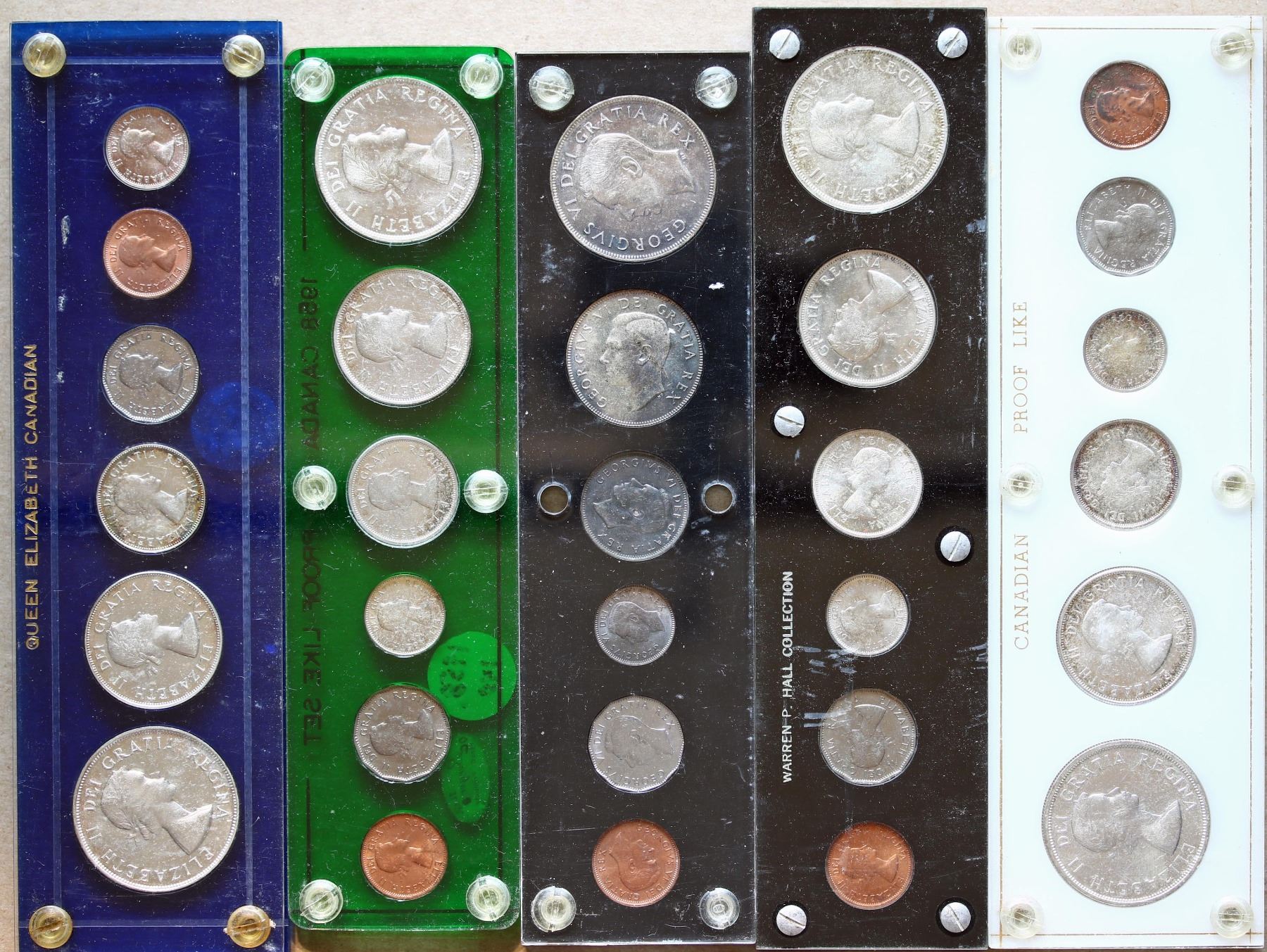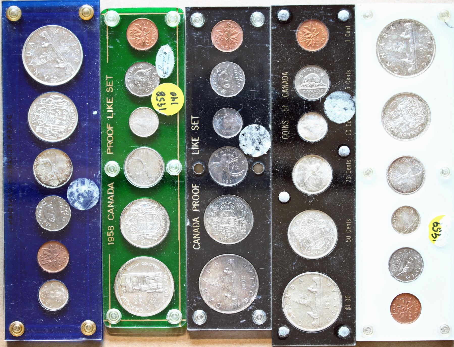 Years Sets; 1952, 1953, 1957, 1958 &1959. Lot of 5 sets all in plastic Capitol type holders. See