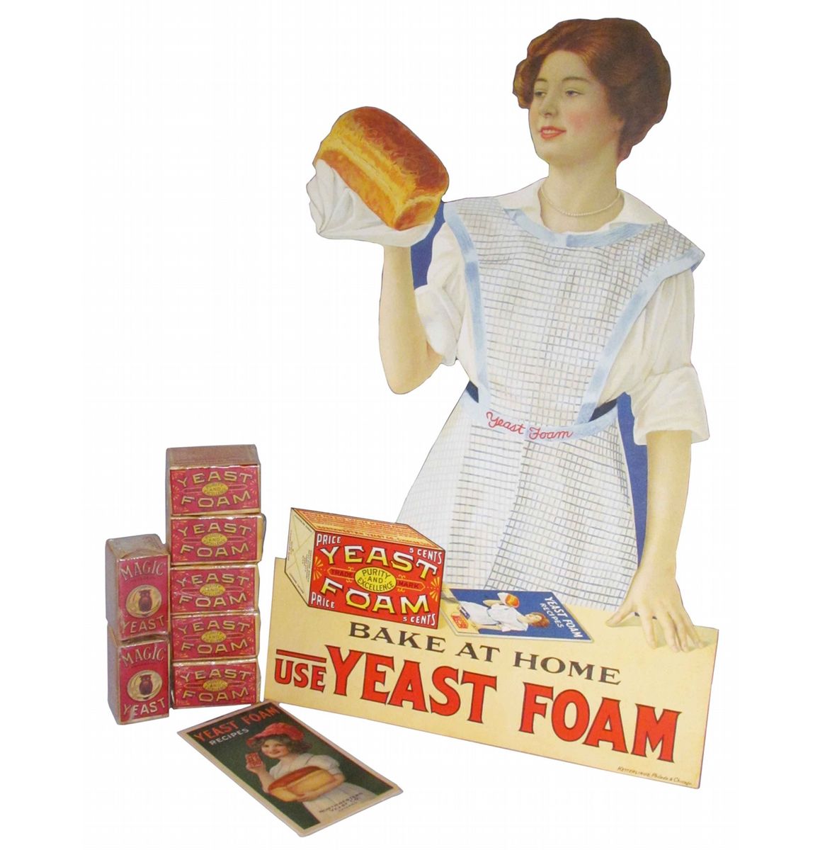 Yeast Foam Cardboard Easel Back Store Display. Comes with recipe book and seven boxes of product. Die cut in near mint condition, measures 13 X 20 inches.