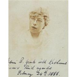 [Yeats family] AN ARCHIVE OF PAPERS AND PHOTOGRAPHS RELATING TO THE YEATS FAMILY’S CANADIAN CONNECTIONS Provenance: J. Edwin Yeats, Toronto, Canada; Thence by descent; Sotheby’s, Billingshurst, August 2001; Private collection, UK A collection consisting of a photograph album, loose photographs (10), postcards (17), framed sketches (2) and a letter - the property of J. Edwin Yeats, a first cousin of John Butler Yeats. Edwin was the third son of John Butler Yeats’ favourite uncle Matthew Yeats. He emigrated to Toronto, Canada, and worked there as a banker. The archive contains 13 postcards sent from Edwin’s unmarried sister Grace A. Yeats (pictured in photograph), who remained in Ireland, living in Dalkey, addressed variously to Edwin, his wife Jennie, and their two children, Frank and Grace B. Yeats. Also 3 postcards from Grace’s mother, A.G.M. Yeats (‘Gracie Yeats’ - the sitter in John Butler Yeats’ portrait - see previous lot) to her son’s family in Canada. The letter, dated 31 May 1919, and sent from Denham, Canada, is from Edwin’s brother Dr John Francis Yeats, ‘Frank Yeats’, and discusses mainly financial affairs. Also included is a pencil and wash drawing (5.75 by 7.5 inches) of Lough Gill in Sligo, by Frank Yeats; the inscription on reverse records it was his first sketch, done at the age of 60 in September 1922, and given by him that Christmas to his brother Edwin. A second drawing in the same hand although unsigned (4.5 by 7 inches, pencil and wash), is inscribed “Killnamora” and depicts a house which is believed to be Matthew and Grace Yeats’ first home in Co. Kildare. Frank’s was also probably the hand that coloured a black and white photograph of Fort Louis, Matthew and Grace’s house in Co. Sligo, where John Butler Yeats frequently visited. The photograph album contains portrait photographs of many members of the Yeats family, including two of John Butler Yeats, circa 1920, as well as an autographed photograph of Irish poet, novelist and friend of W.B. Yeats, Katherine Tynan (1861-1931), inscribed to Edwin Yeats and dated 24 February 1888.