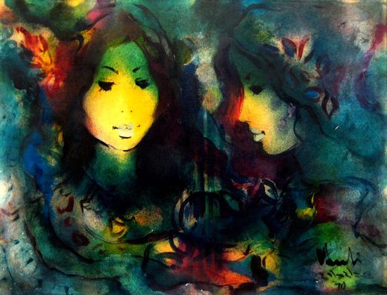 Yehuda Vardi, Israeli Art, 1933 - 1990, Women, 1970, Oil on paper laid on canvas, 49x65cm, Signed and dated., , , , ,