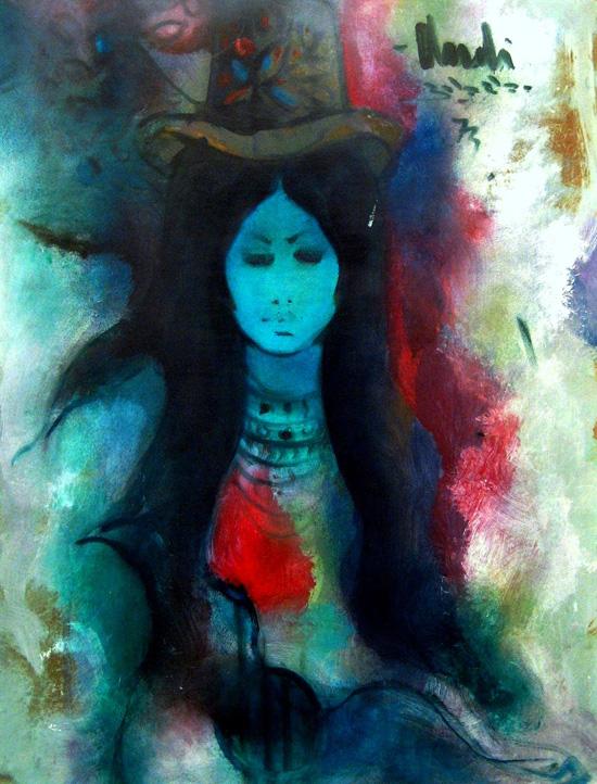 Yehuda Vardi, Israeli Art, 1933 - 1990, Woman with Hat, 1973, Oil on paper laid on canvas, 63x48cm, Signed and dated., , , , ,