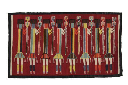 Yei Rug. 60" x 109". Unusual red background and large size. 1940s. Excellent condition. (est $6,000-8,000).