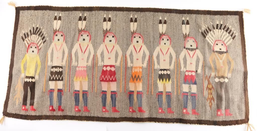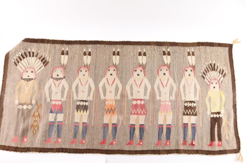 1910-20, 8 figures with 2 chiefs. Traditional colors, condition is good, minor staining and aging. 52" x 24".