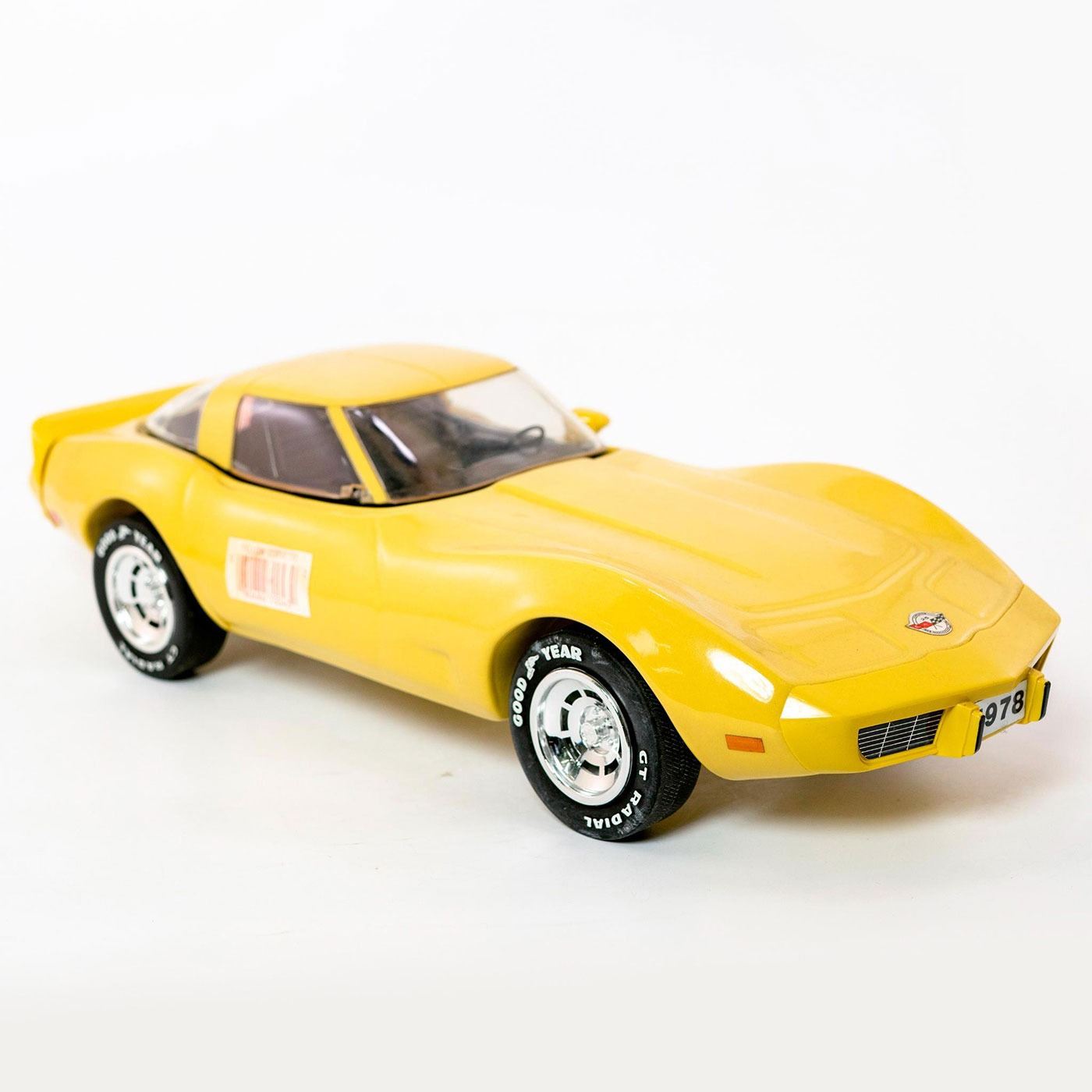 Porcelain undercarriage. Yellow glossy finish with black interior. Alcohol not included. Comes with original box. Automobilia and Americana