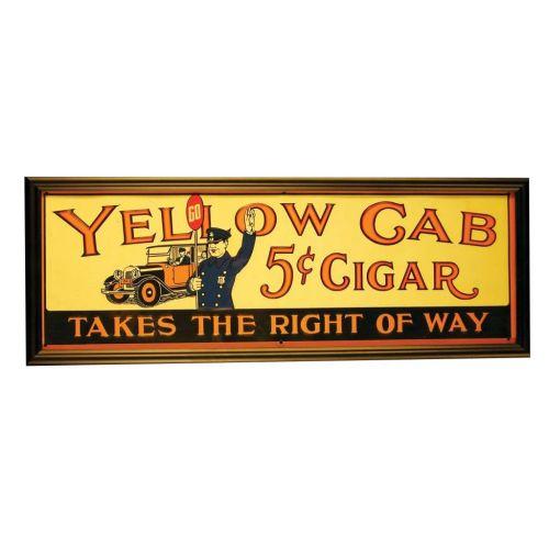 Yellow Cab Cigars Embossed Tin Sign, framed under glass. Mint condition. 20 X 7 inches image only.
