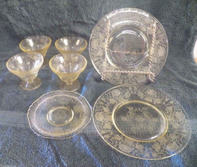 4-dessert cups, 1-saucer, 2- sandwich plates
