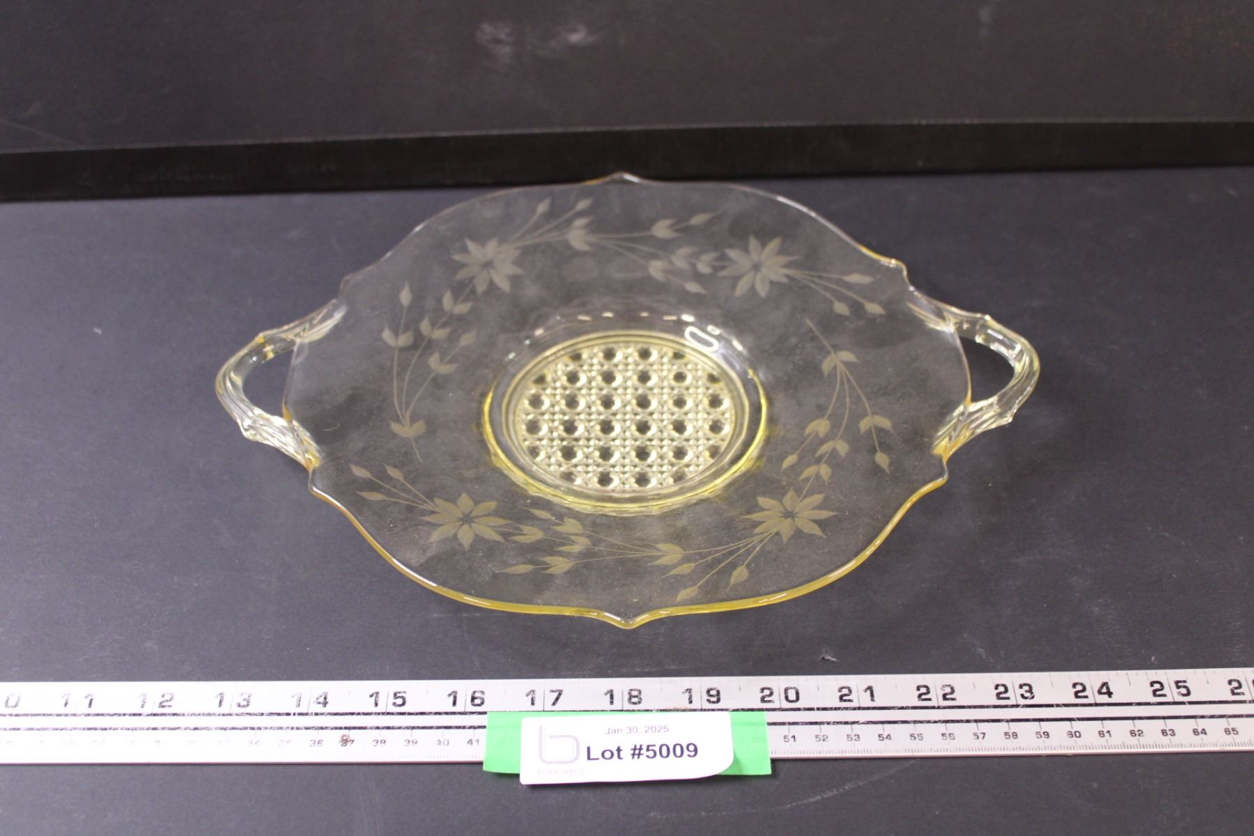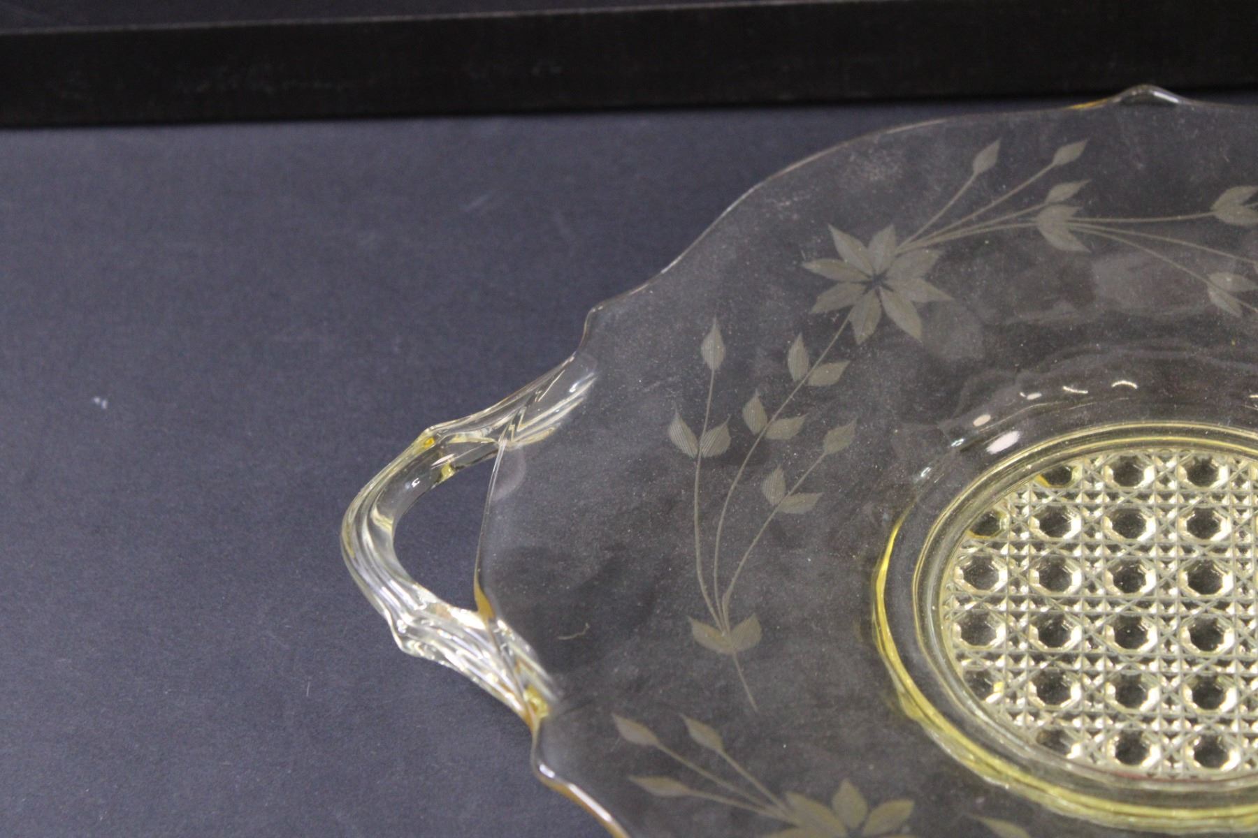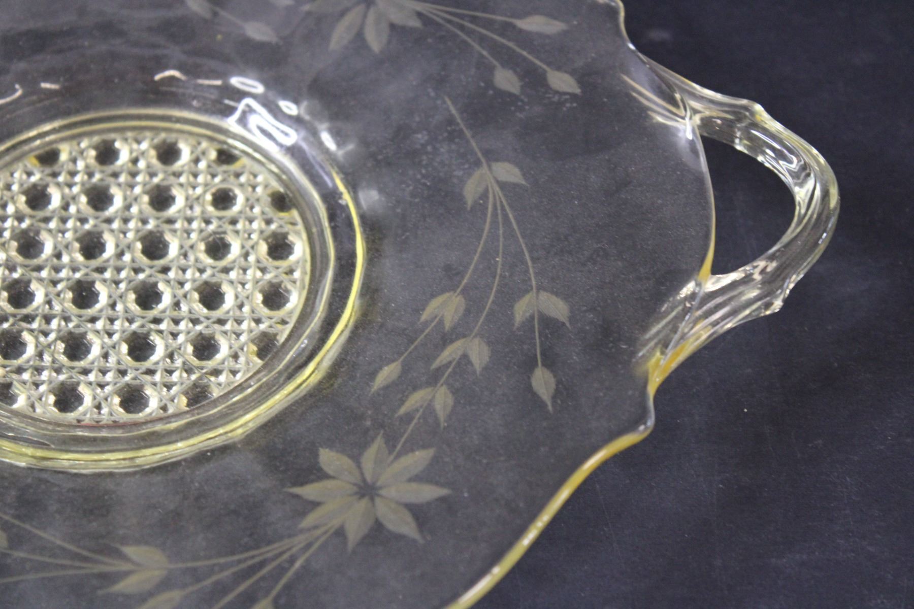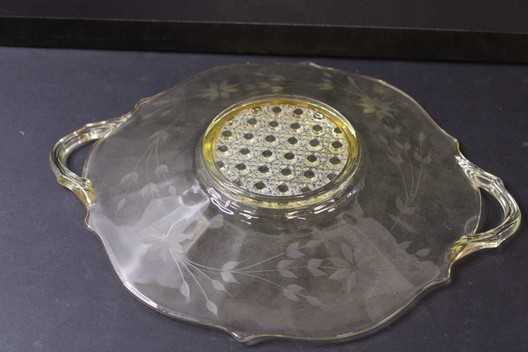 Yellow Depression Glass "Jubilee" Etched Pattern Plate - 10" Diameter