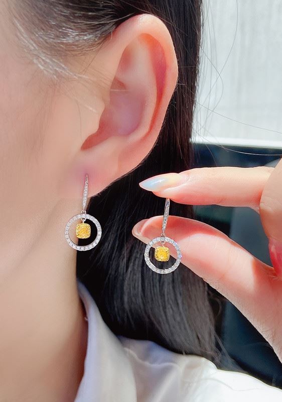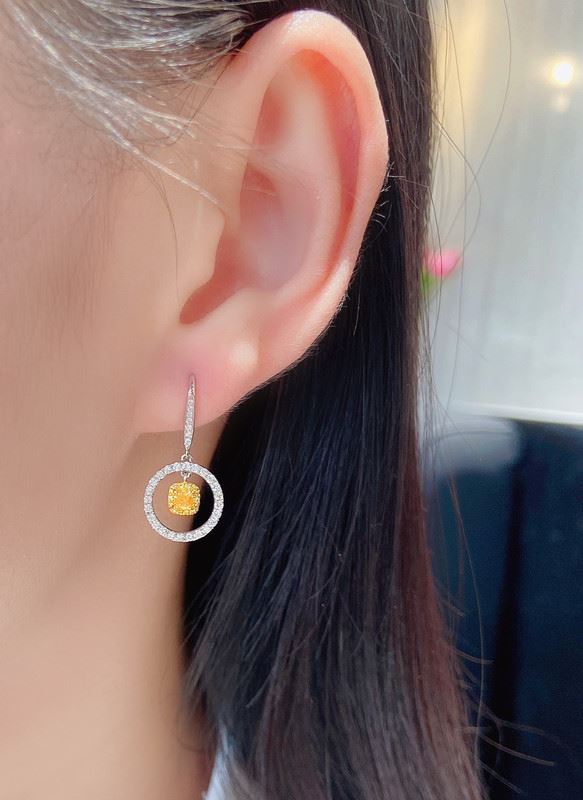 A vivid yellow diamond hangs at the center of a sparkling diamond circle, resembling a playful donut. The clean, modern design blends sweetness with effortless elegance.Main diamond: 0.364ct, side diamonds: 0.491 ct. Note: Comes with an AGL certificate and a domestic jewelry identification certificate.