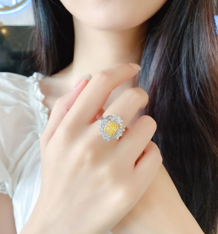 This yellow diamond double-layer clover ring features a stunning yellow diamond at its center, surrounded by a sparkling array of diamonds that form a vibrant four-leaf clover design. The warm yellow hue of the central diamond contrasts beautifully with the surrounding diamonds, symbolizing luck and elegance. The layered design adds depth and charm, making it a perfect choice for those seeking a blend of luxury and fortune.Ring size: 6, circumference: 52 mm, diameter: 16.6 mm, main diamond: 1.01 ct, side diamonds: 0.711 ct.Note: Comes with a GIA Natural Diamond Report.