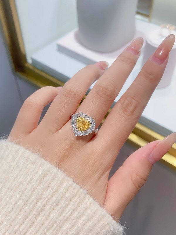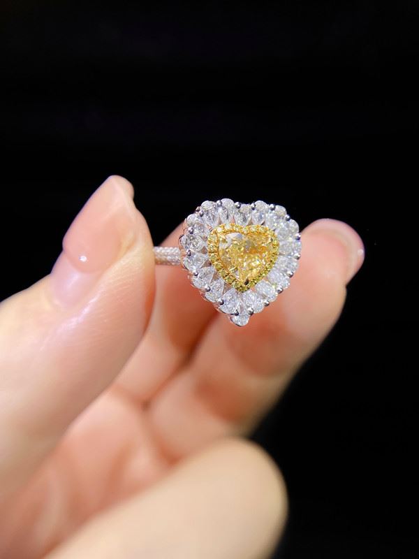 This yellow diamond heart ring features a heart-shaped design, with a brilliant yellow diamond at the center surrounded by sparkling white diamonds, creating a radiant love-inspired motif. The warm hue of the yellow diamond contrasts beautifully with the fresh brilliance of the white diamonds, blending romance with luxury. The elegant design makes it the perfect gift for someone special, embodying both love and sophistication.Ring size: 6, circumference: 52 mm, diameter: 16.6 mm, main diamond: 1.02 ct, side diamonds: 1.223 ct.Note: Comes with a GIA Natural Diamond Report.