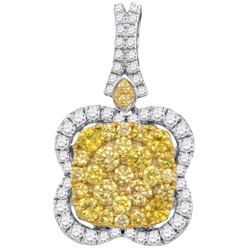 14kt White Gold Womens Round Yellow Diamond Quatrefoil Frame Cluster Pendant 1-5/8 Cttw