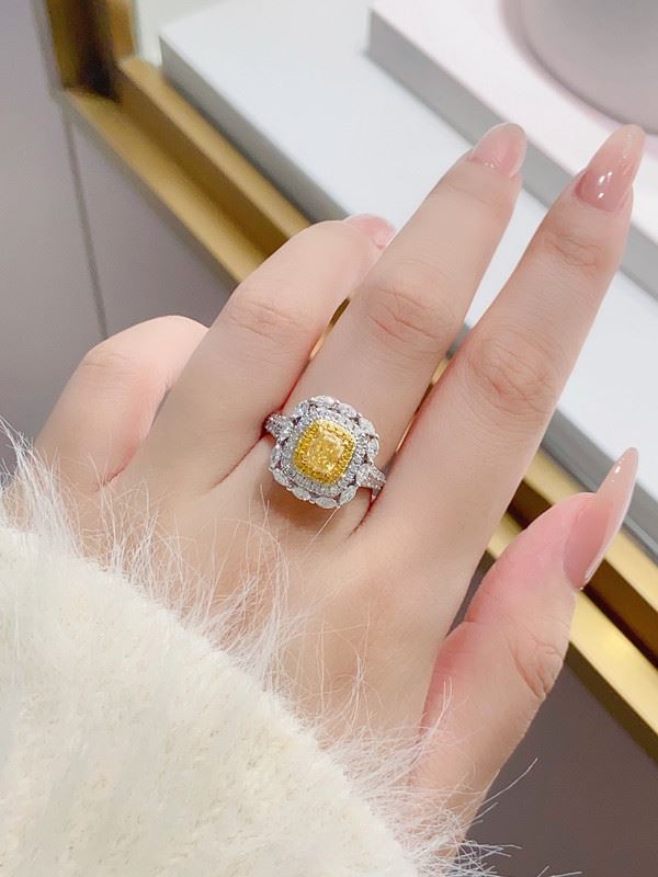 This yellow diamond Y-shaped ring features a stunning yellow diamond at the center, surrounded by sparkling white diamonds that form a luxurious halo. The Y-shaped band adds a sleek, elegant design, enhancing the beauty of the diamonds. With its refined, modern aesthetic, this ring is perfect for special occasions and exudes sophistication and timeless elegance.Ring size: 6, circumference: 52 mm, diameter: 16.6 mm, main diamond: 1.00 ct, side diamonds: 0.927 ct.Note: Comes with a GIA Natural Diamond Report.