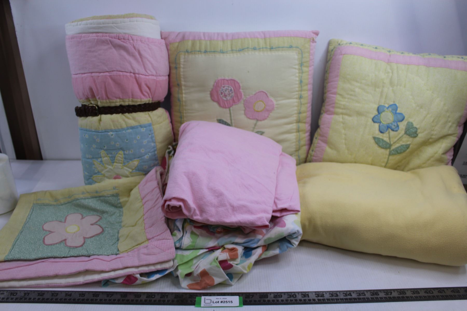 Yellow Flower Blanket & Pillow Set, White Multicoloured Butterfly Twin Bed Set, Pink Flat Sheet