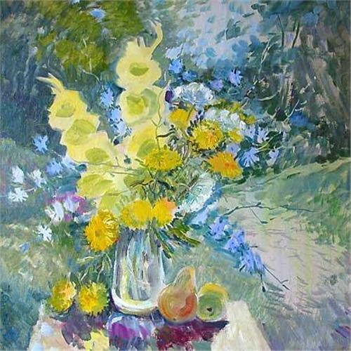 <tr><td>Title:"Yellow Gladioluses" oil in impressionism</td></tr>