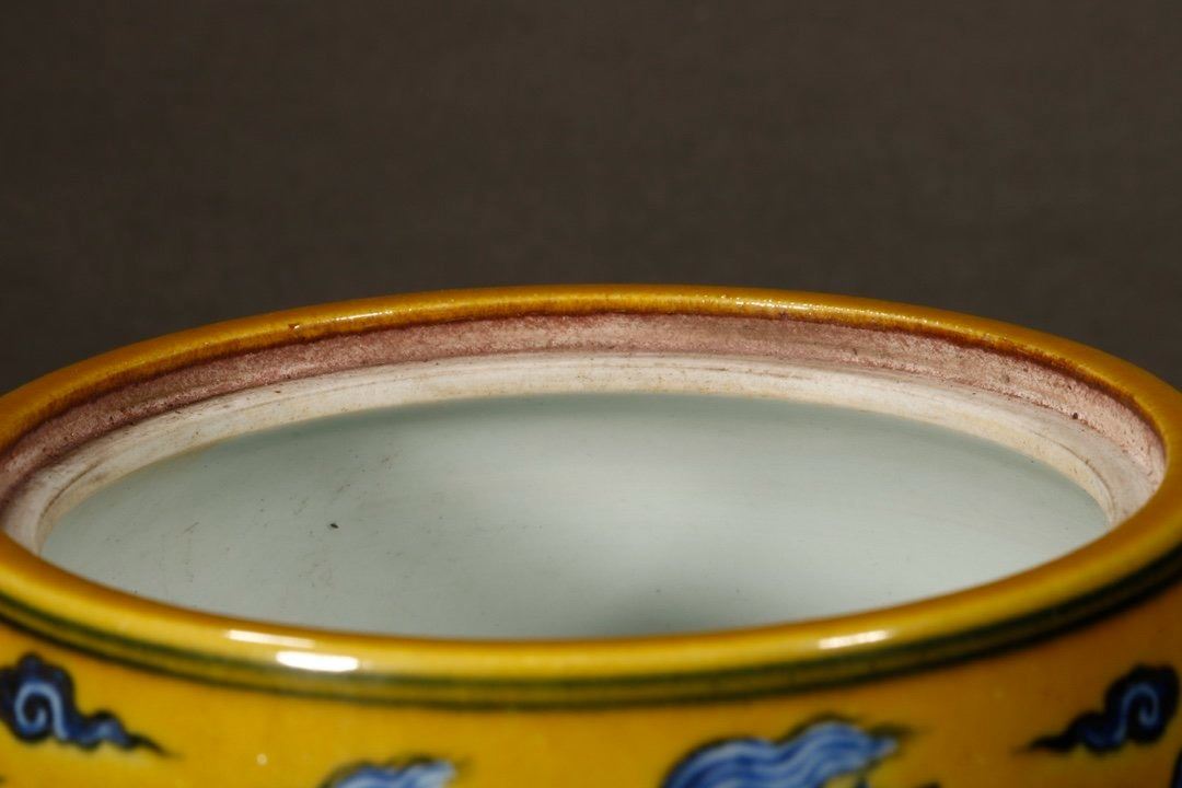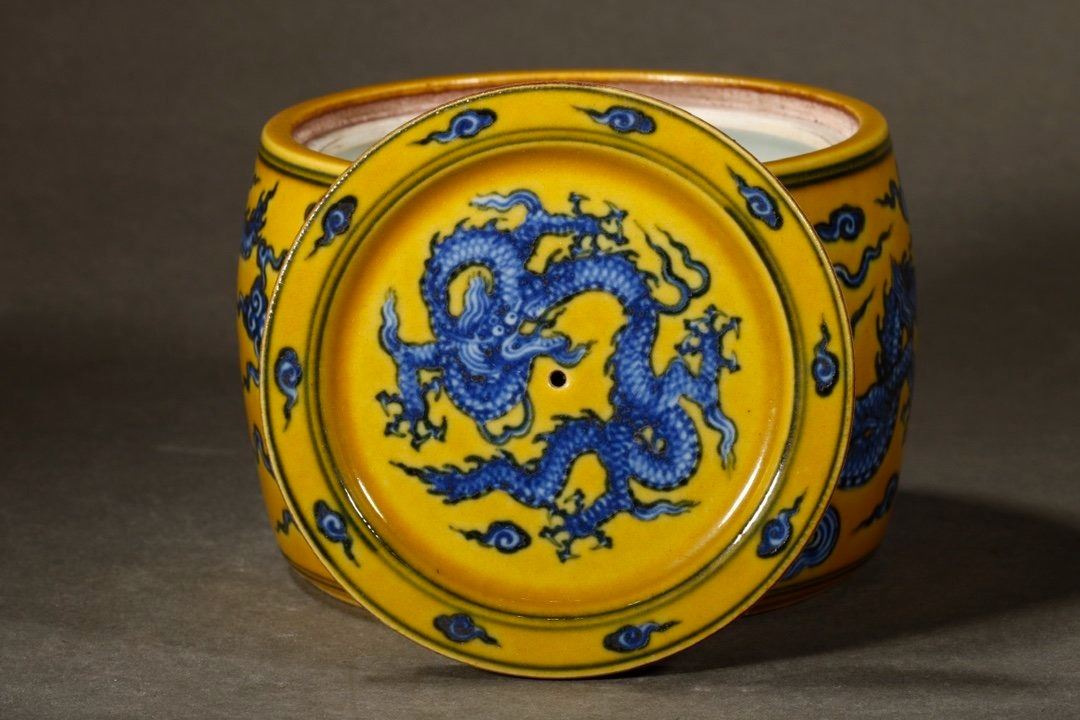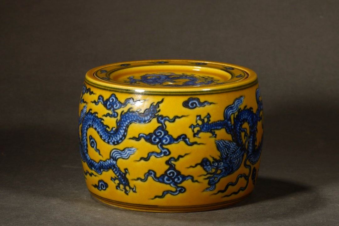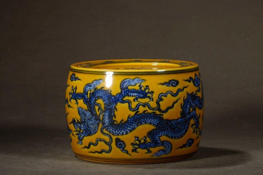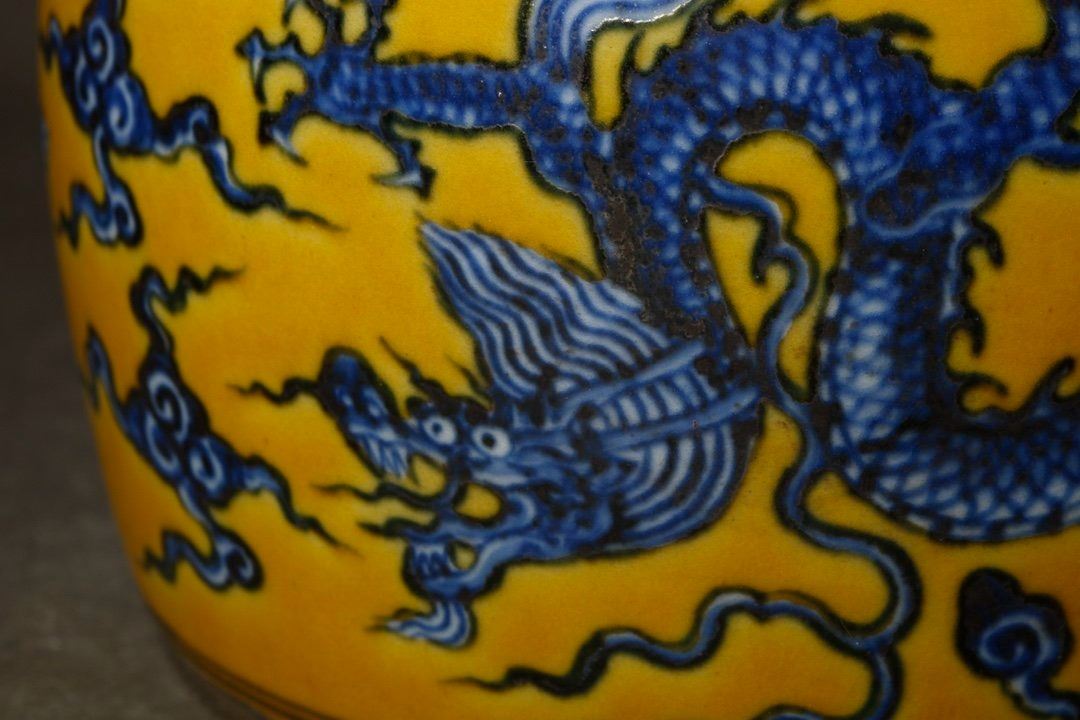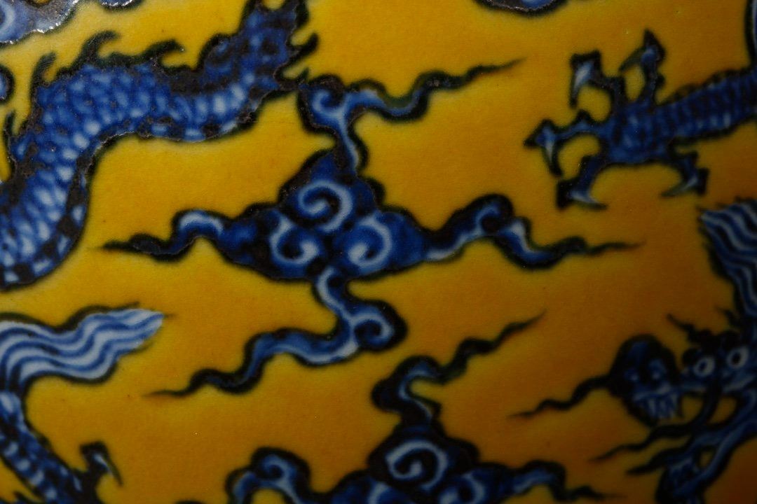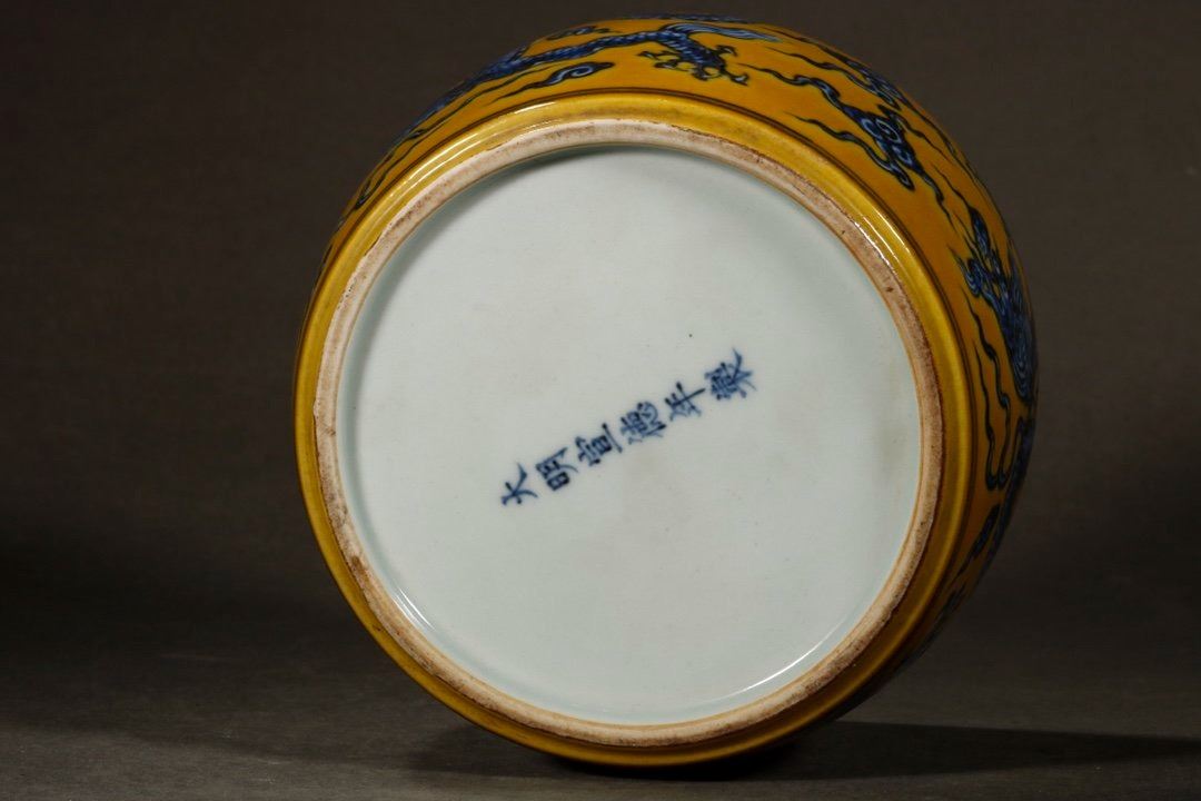 Yellow Glazed Blue and White Dragon Pattern Jar, Daming-Xuande-Nianzhi Mark