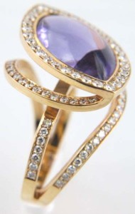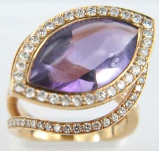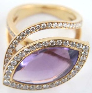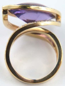 Yellow Gold Amethyst Diamond RingThe total weight of the ring is 10.5 grams.The size of the amethyst is 19 x 11 mm.The weight of the diamond is 0.80 ct approximately.Ring's size is