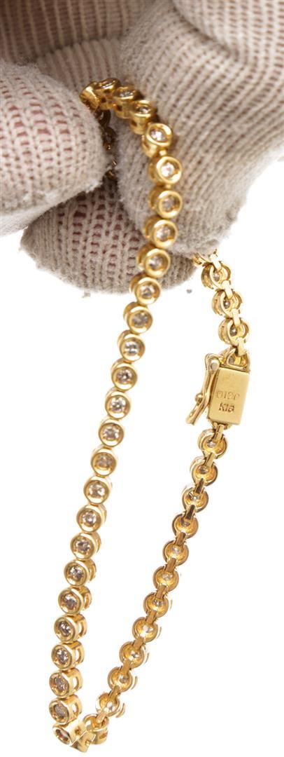 One Yellow Gold Bezel Set Diamond Tennis Bracelet 17cm.