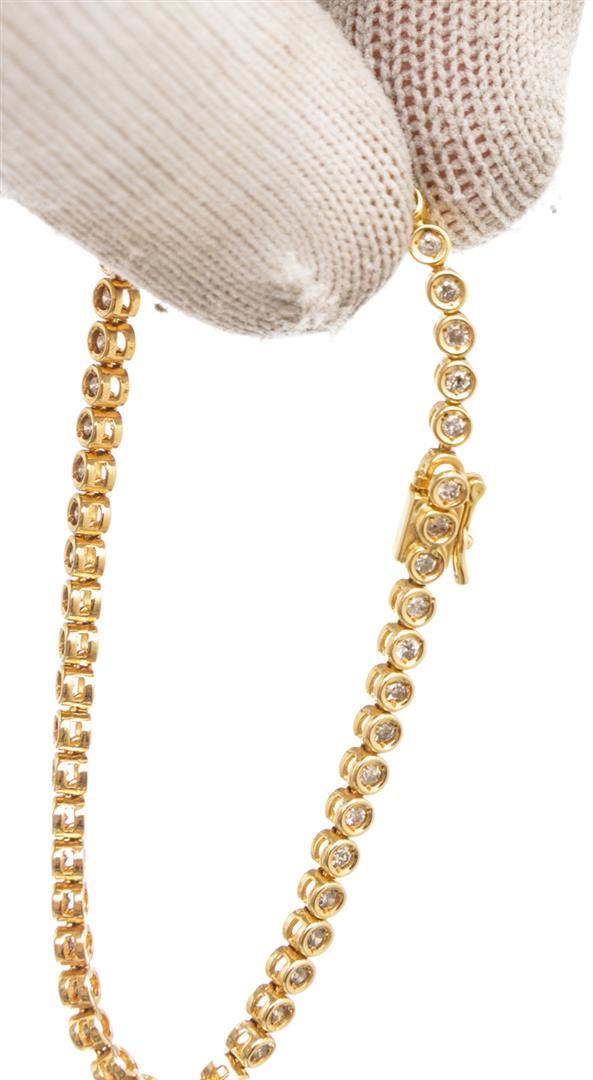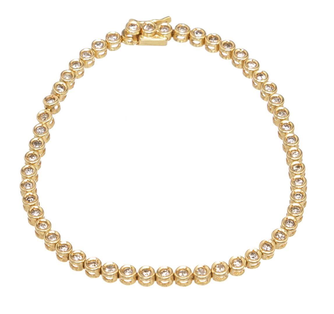 One Yellow Gold Bezel Set Diamond Tennis Bracelet 17cm.