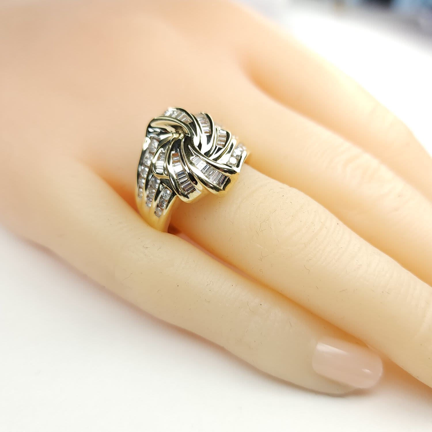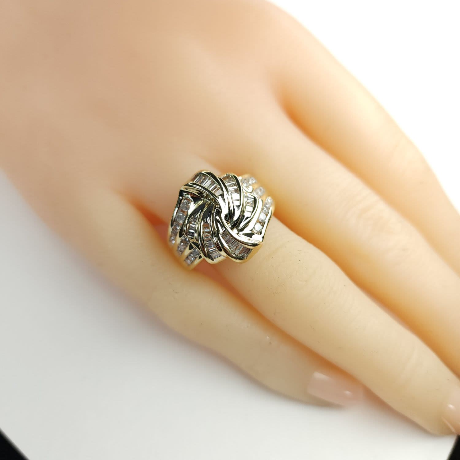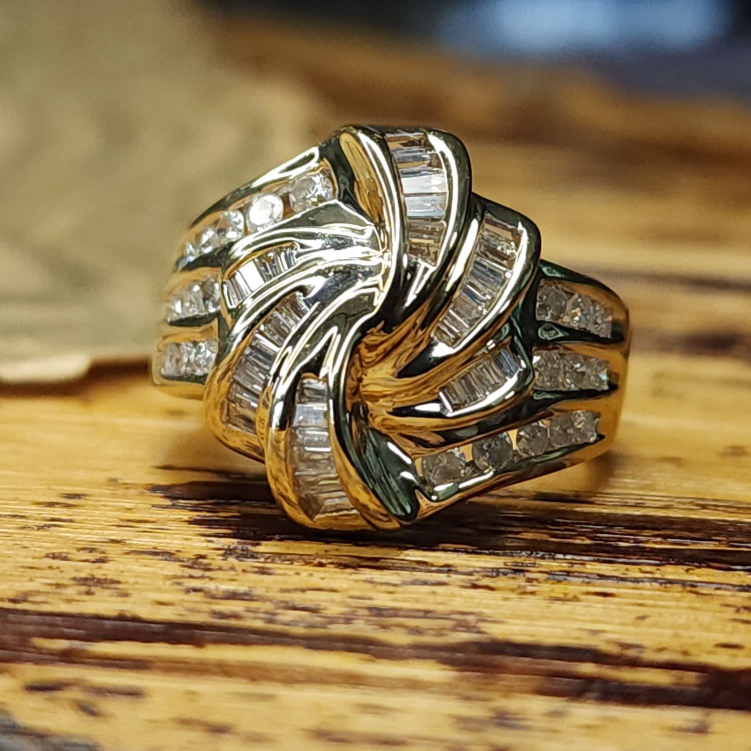 S5/5.4 - MYS TITLE DESCRIPTION: Samuel Aaron Diamond Pinwheel Bow Ring DESCRIPTION DETAIL: A stunning dress ring featuring round and baguette cut natural Diamonds set in 14K Yellow Gold in a pinwheel design. OVERALL CONDITION: Excellent, Like New DIAMONDS: Natural Weight: 0.66 Carats Total Weight (approximate) Shape: Round, Brilliant-Cut Color: G-I Clarity: VS1 DIAMONDS: Natural Weight: 1.20 Carats Total Weight (approximate) Shape: Baguette Color: H Clarity: VS2-I1 METAL: 14K Yellow Gold WEIGHT: 8.36 Grams SIZE: 8.25 APPRAISAL REPORT: This ring is certified and appraised for $6,450.00 estimated retail replacement value by The Certified Gemological Laboratory of Europe (CGL). Please inquire about sizing if needed, and allow an additional 10 days for shipping if we resize it. Auction Code: S5/5.4 - mys THIS ITEM IS CONSIGNED FROM A VERY PROMINENT STUART FAMILY WITH A VERY LOW RESERVE PRIOR TO BIDDING READ THE DESCRIPTION, TERMS, AND CONDITIONS CAREFULLY This description and condition report is provided for your convenience based on the information provided by the consignor. CAA is not responsible for any discrepancies between this information and other opinions. Buyers Premium: 18% Shipping Billed Separately Payment Due in 7 days All items shipped to registered address - NO EXCEPTIONS .
