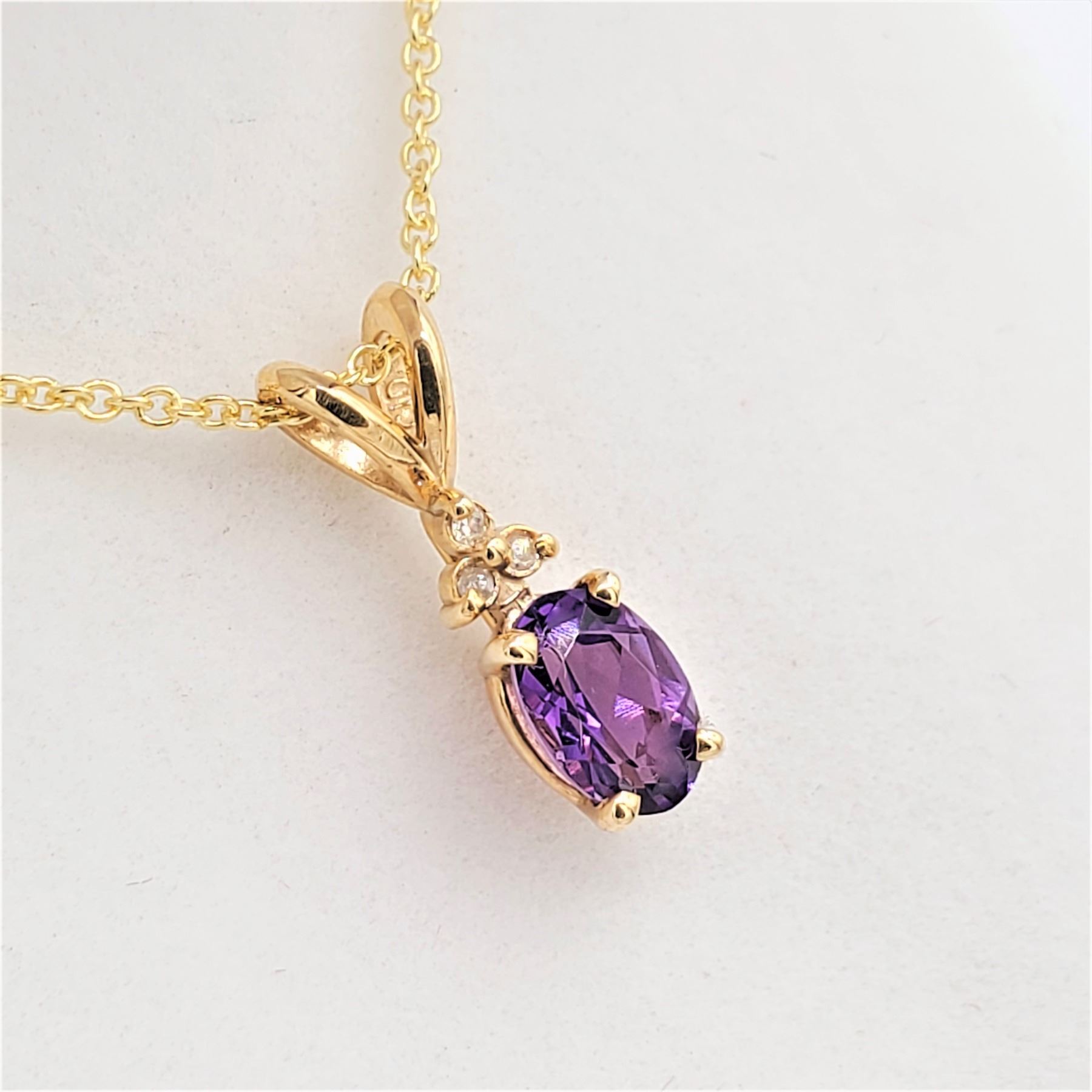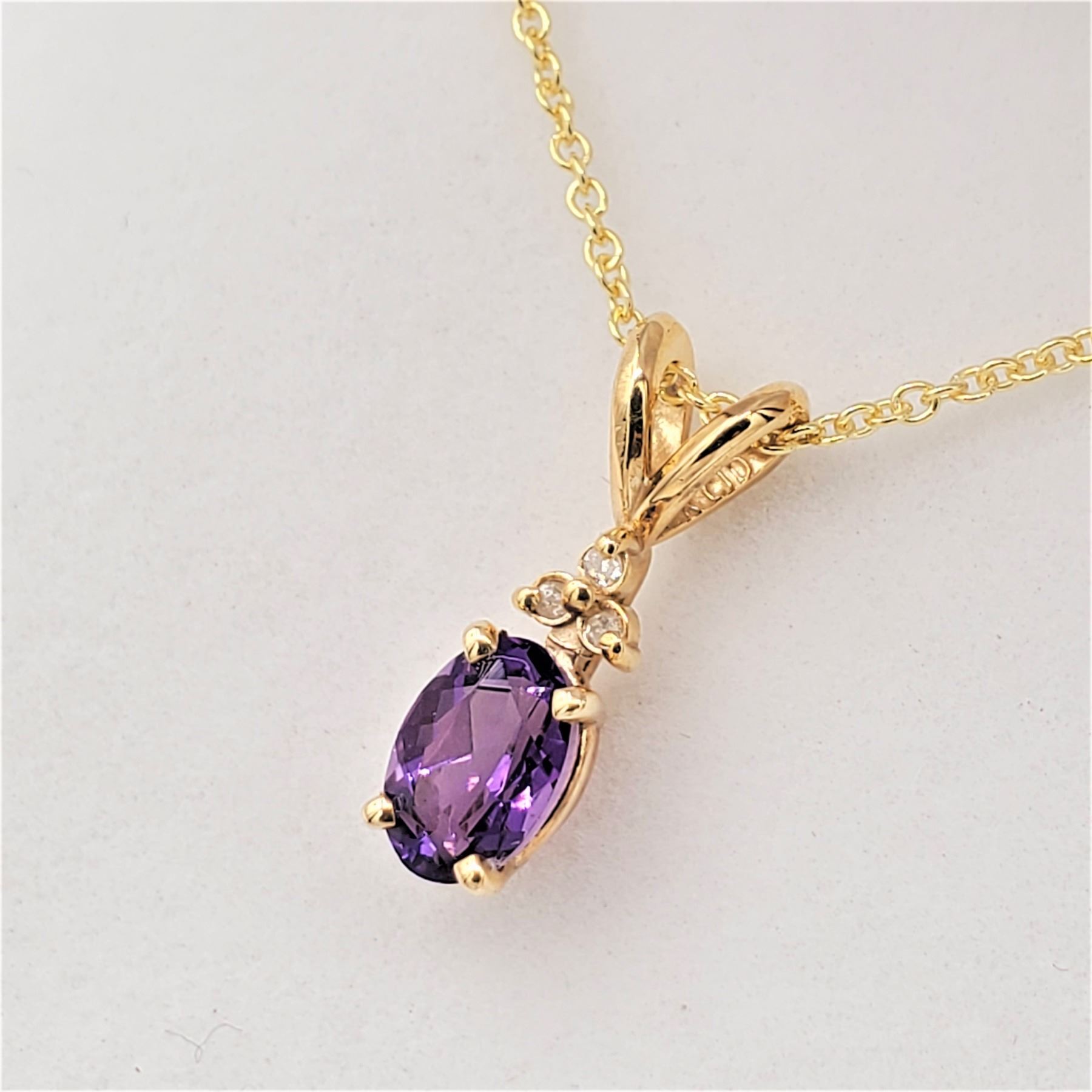 10kt. Yellow Gold 6mm x 4mm genuine Amethyst (0.35cts) & Diamond (0.01cts) Pendant with Sterling chain, With appraisal of $920.00, Amethyst is the birthstone for February.