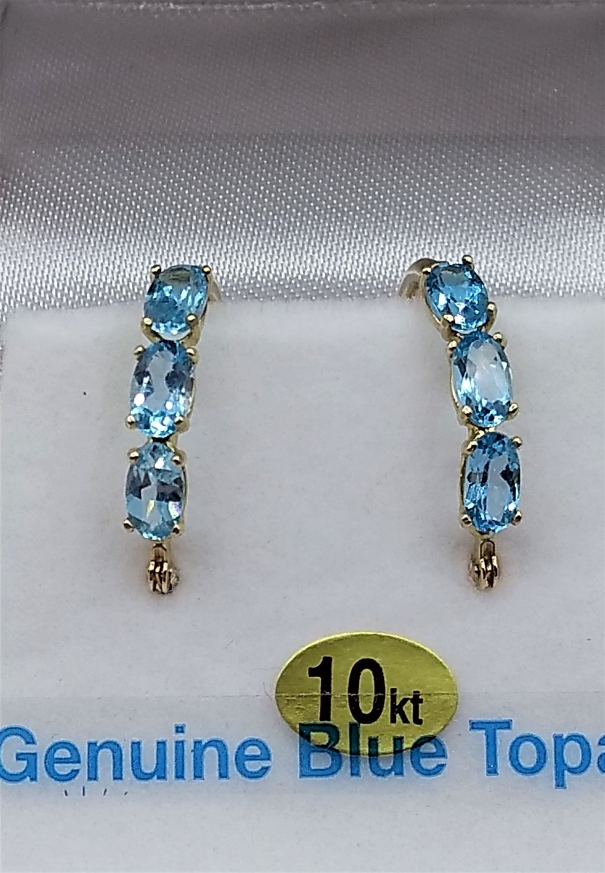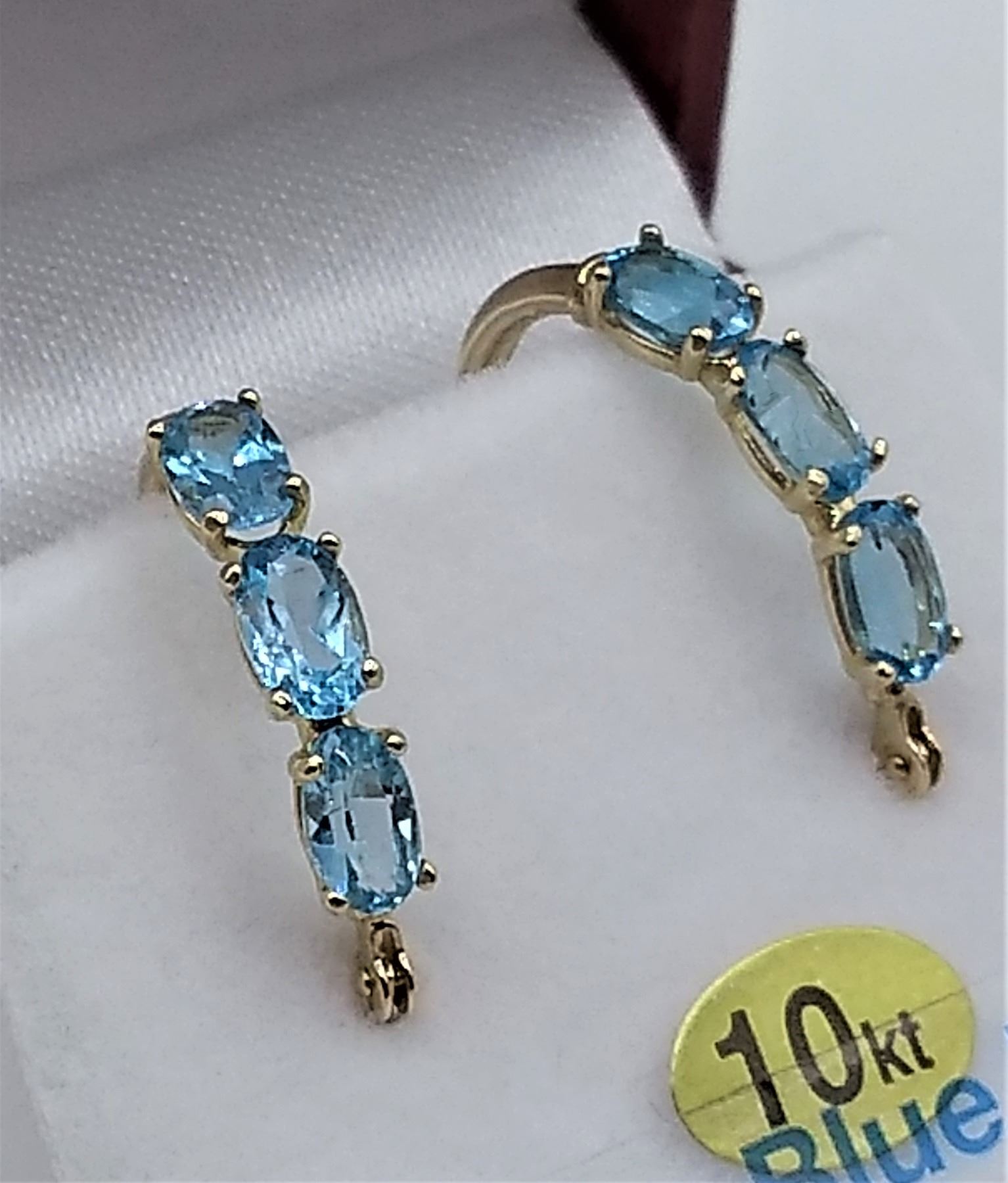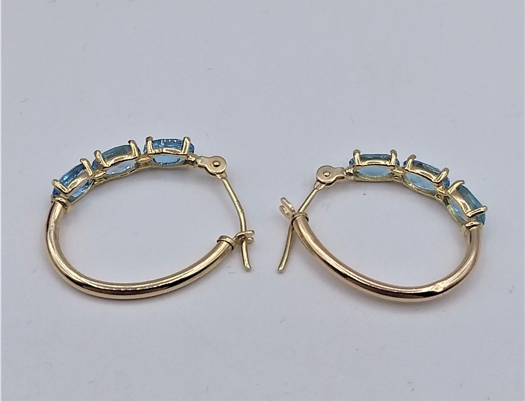 10kt. Yellow Gold 5x3mm genuine Blue Topaz Hoop Earrings, 6 Topaz (1.66cts), retail $900.00
