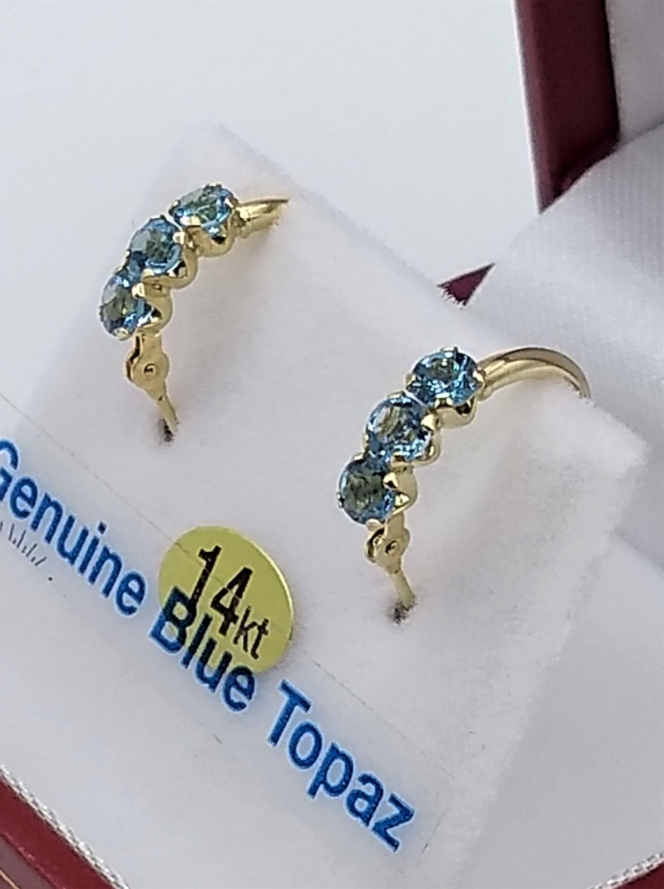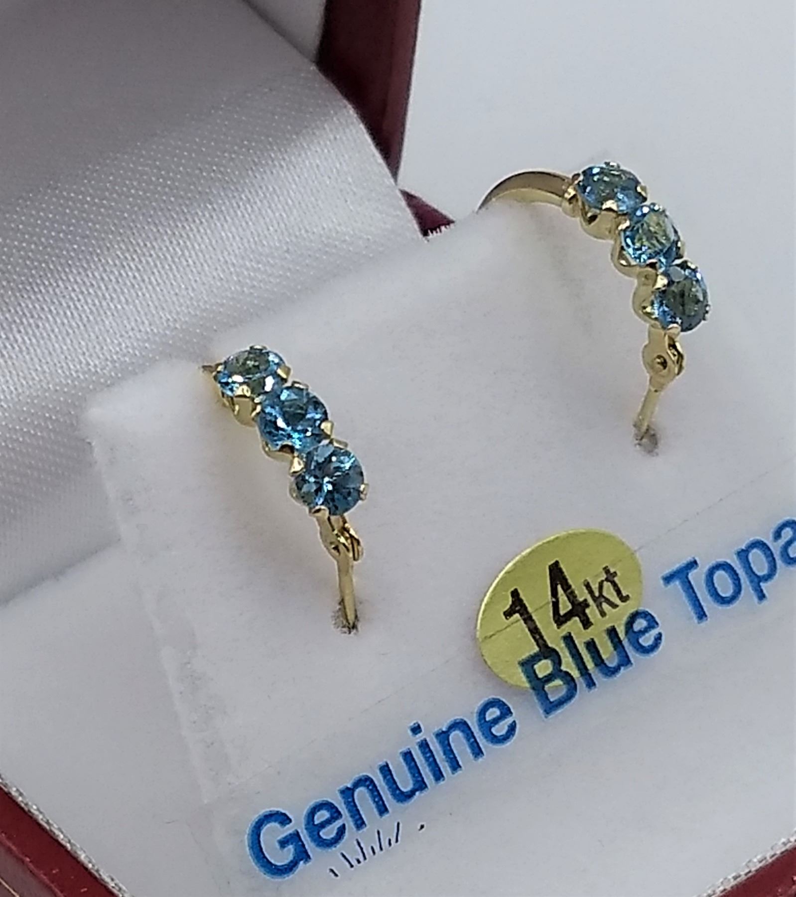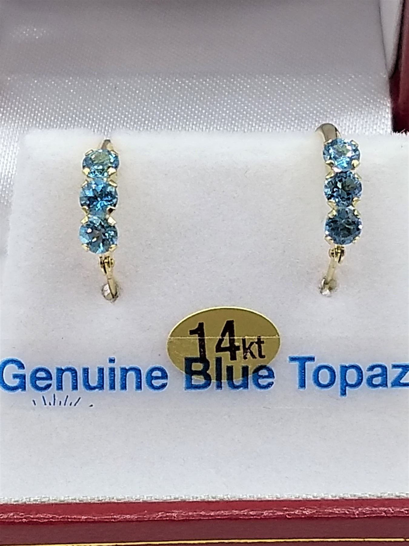 14kt. Yellow Gold genuine Blue Topaz Mini-Hoop Earrings, retail $500.00...New