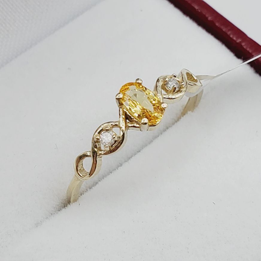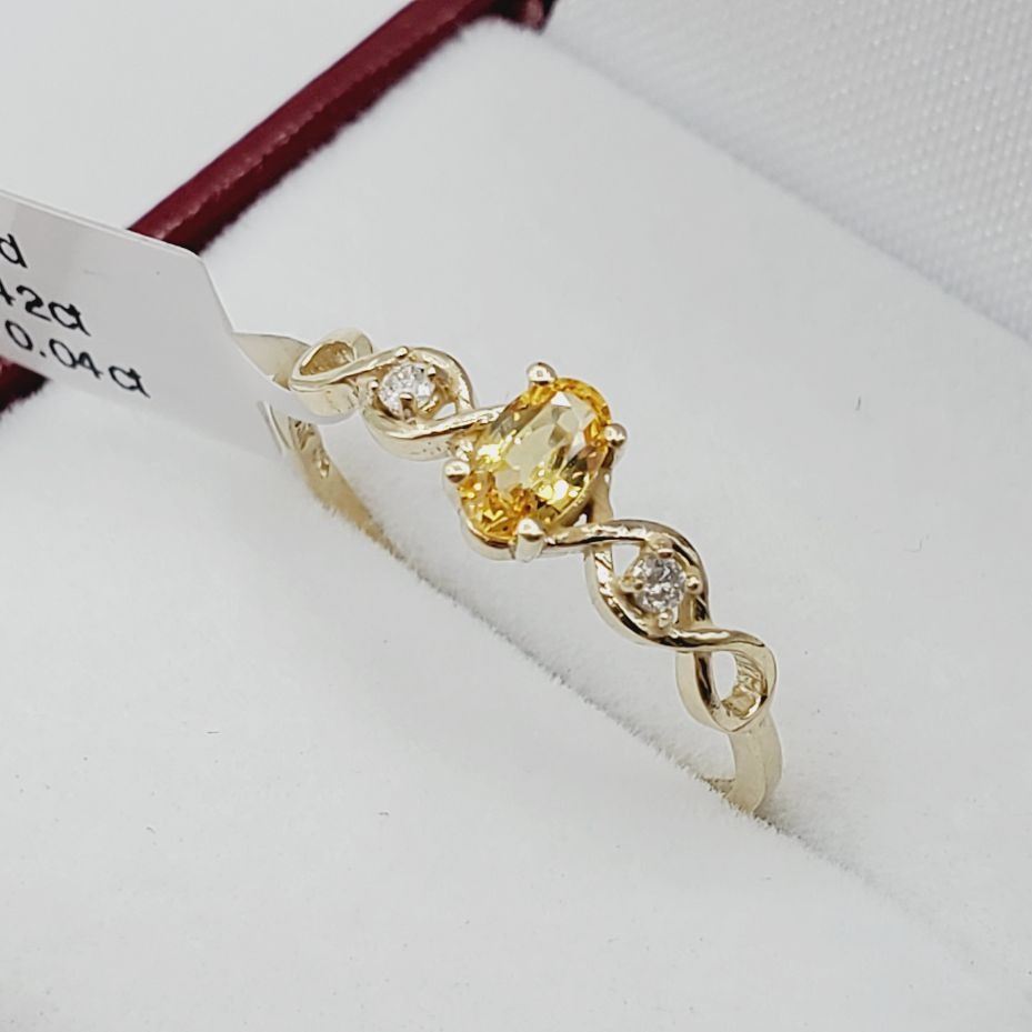 10kt. Yellow Gold 4.85mm x 3.2mm genuine Golden Tourmaline (0.42cts) & Diamond (0.04cts), W/A $940.00, Size 6.25, Tourmaline is a birthstone for October.