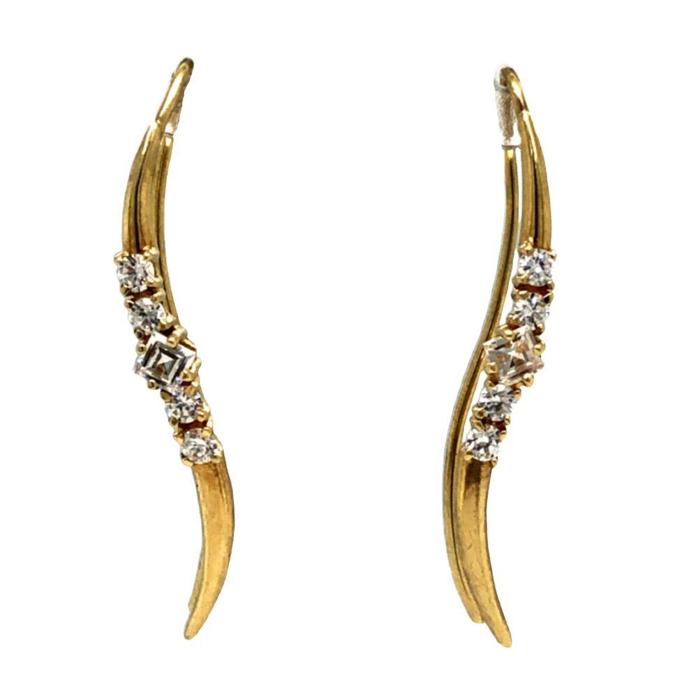 TITLE DESCRIPTION:& nbsp; 14k Yellow Gold CZ C Hoop Earrings