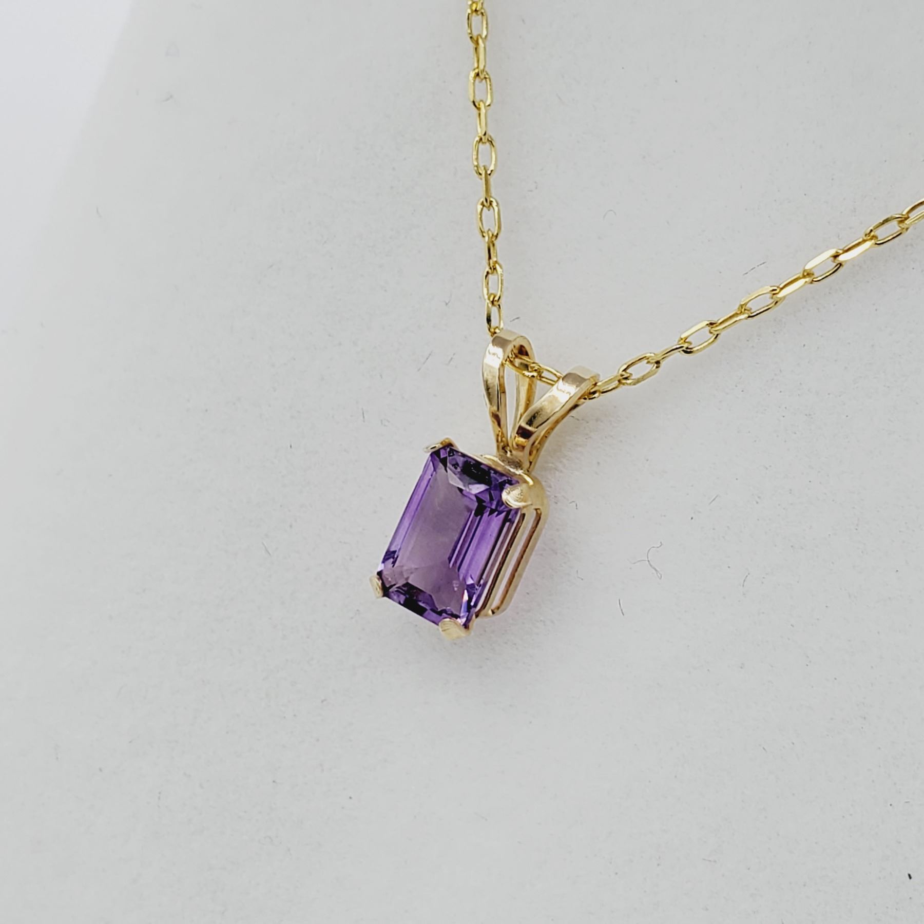 14kt. Yellow Gold 6mm x 3.95mm Natural Amethyst Pendant with Sterling chain, 0.53cts, W/A $715.00, Amethyst is the birthstone for February.