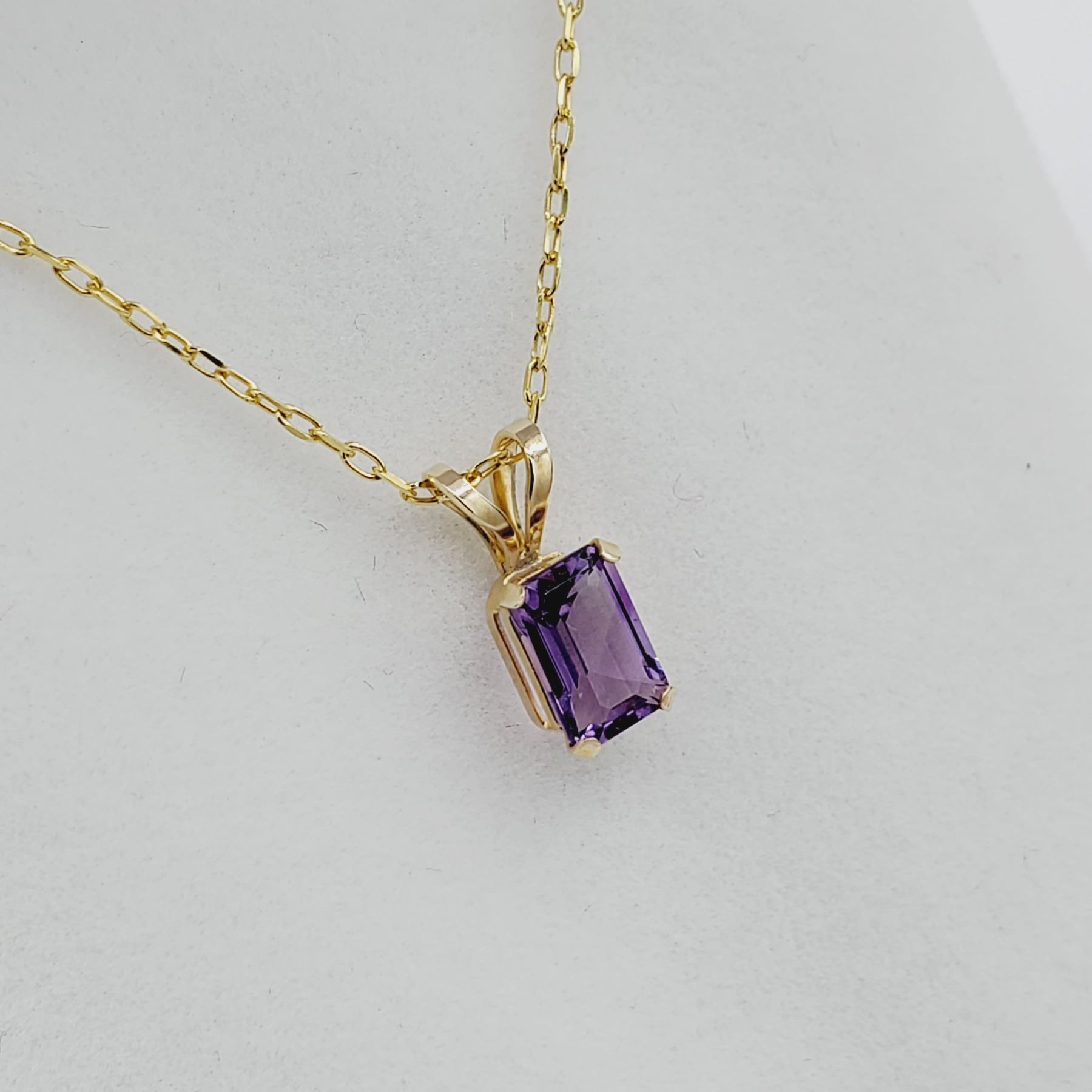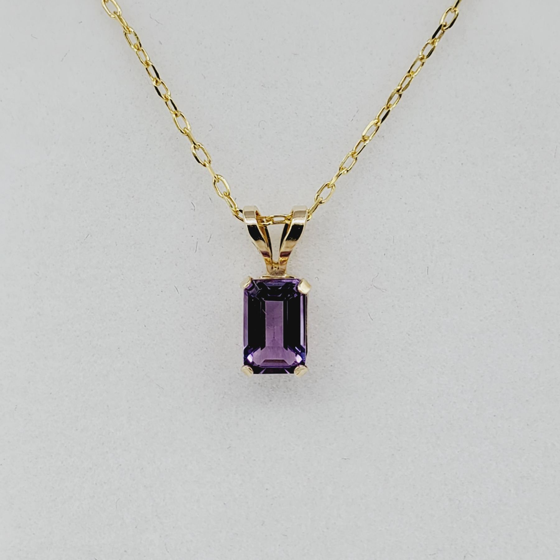14kt. Yellow Gold 6mm x 3.95mm Natural Amethyst Pendant with Sterling chain, 0.53cts, W/A $715.00, Amethyst is the birthstone for February.
